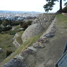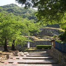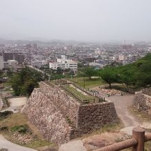 そして、天球丸の脇に山上ノ丸に続く石段があります。片道30分ほどで天守台へ。山上ノ丸からは素晴らしいビューポイントで、鳥取市内や鳥取砂丘も見渡せます。戦国時代は、この山上ノ丸がメインであったようで、江戸時代以降山麓がメインになったとのことでした。