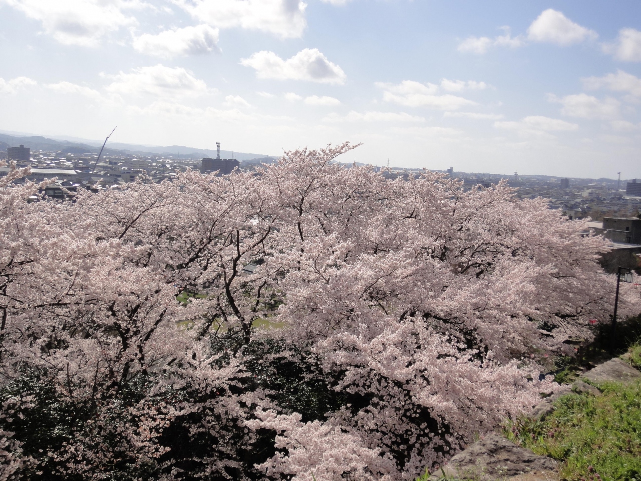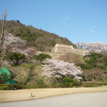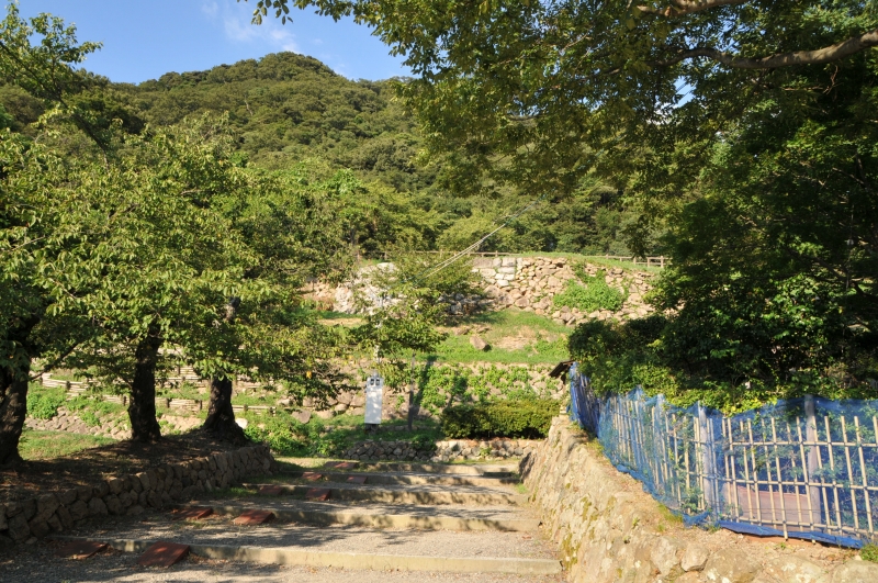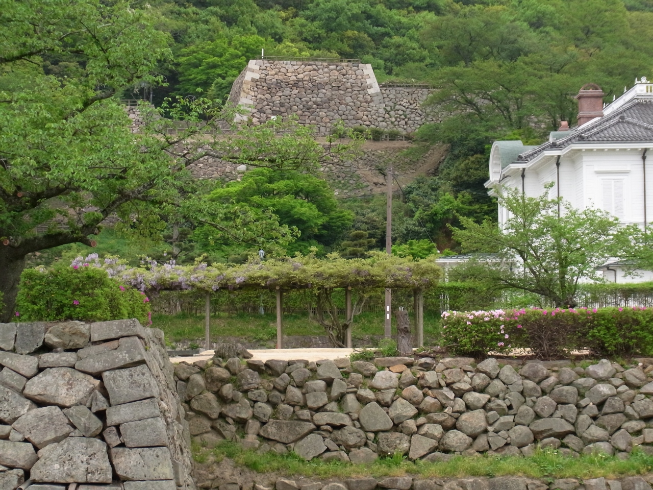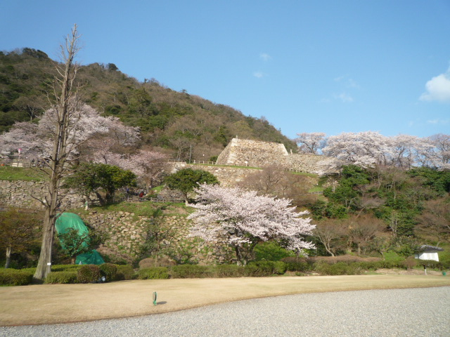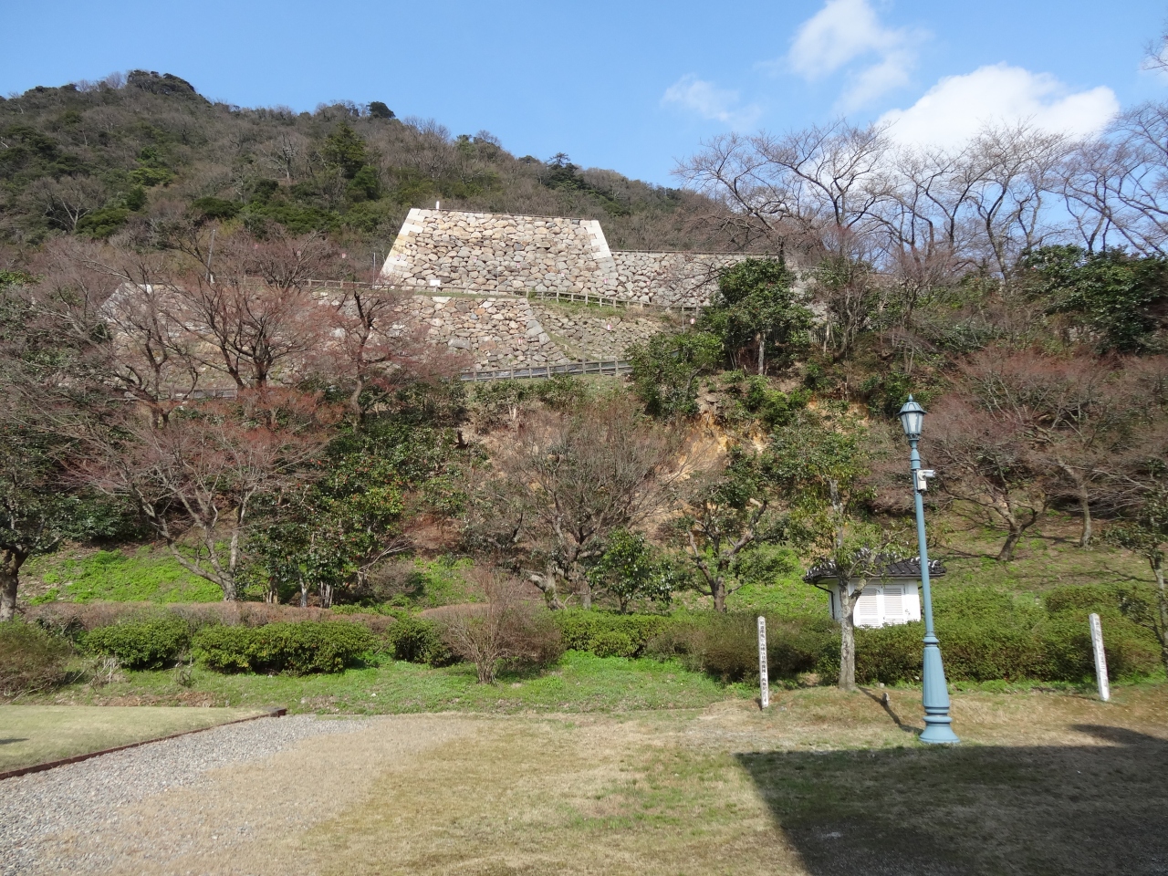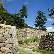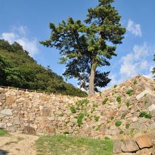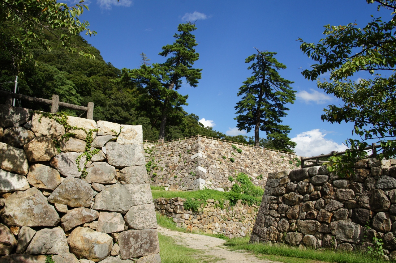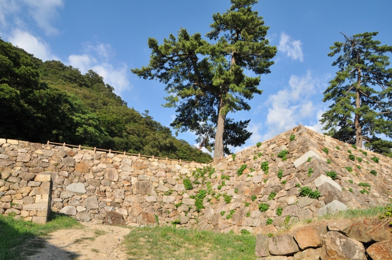 城は、山の中腹に展開する部分は平山城のようですが、その奥山頂に向けては、今でも険しい山城のエリアがあって、全体を踏破するのはそれなりの覚悟が必要です。天守閣は残っていませんが、石垣も立派で、一角に立つ大きな松の木で十分にかつての威容を想像することができました。