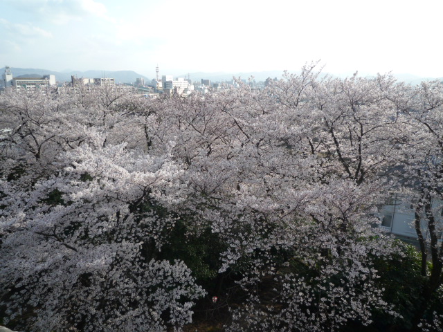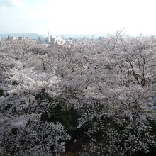 少し登って仁風閣や鳥取の町と桜を眺めるのがベストポイント。
