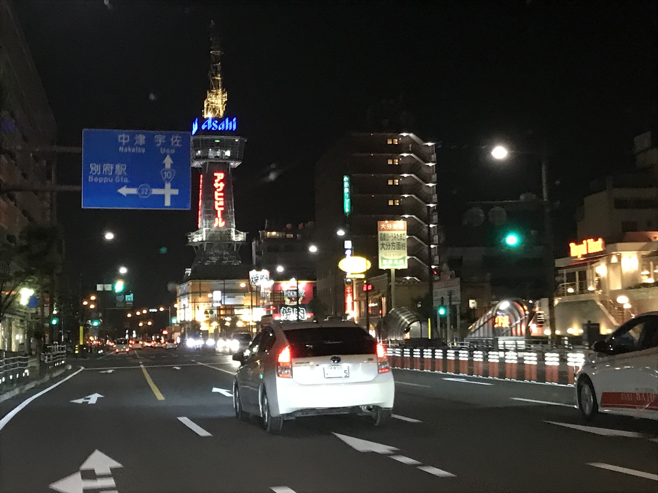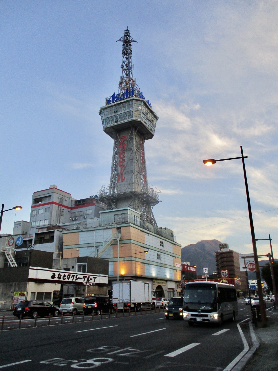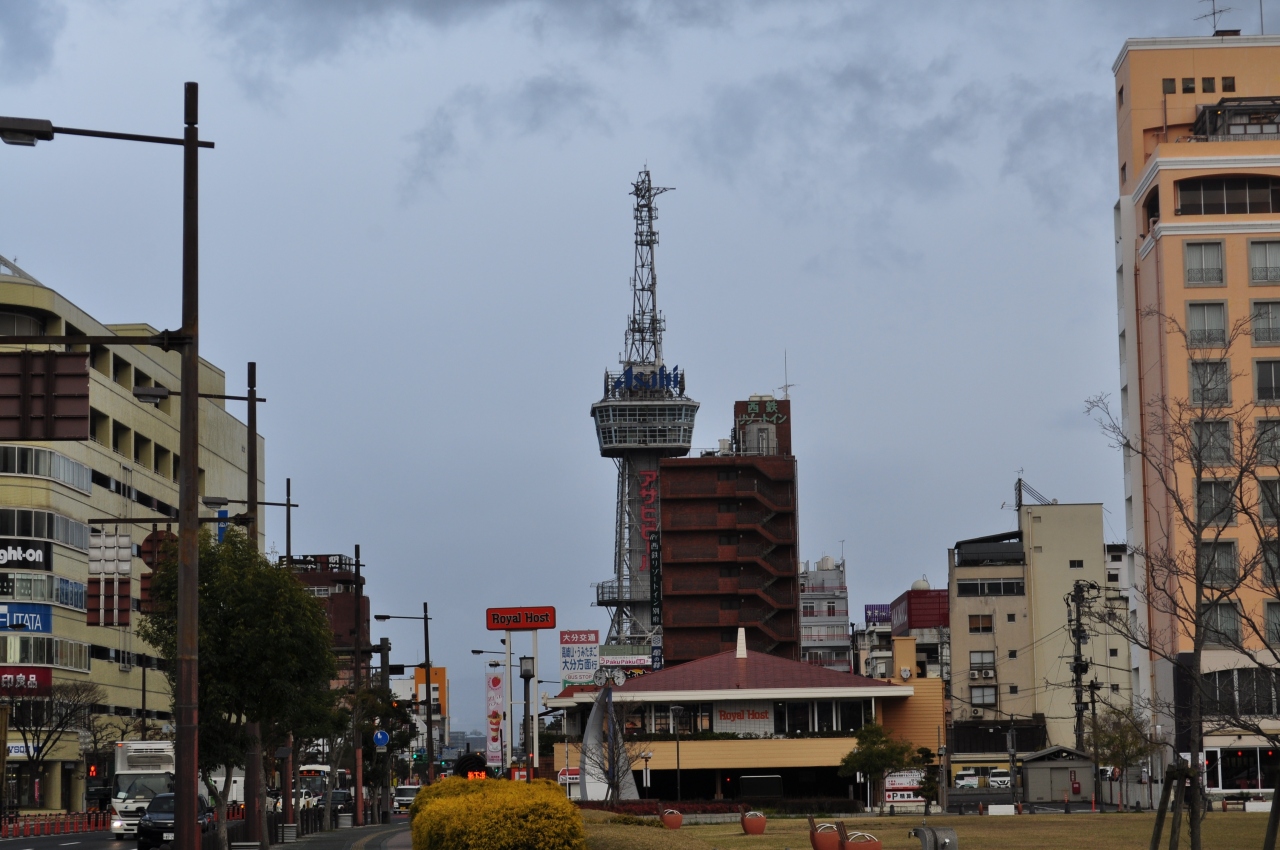 大分空港から車で1時間、別府から大分に向かう国道10号沿いに「別府タワー」があります。タワー好きとしては押さえなくてはいけ... 続きを読むない場所ですので、しっかり見学してきました。駐車場は近くのコインパーキングを利用、隣のセブンイレブンに止める人もいるらしいのですがルールを守りましょう。国道側にある入口にいきなり券売機があります。大人300円・小人100円、チケットを買ってその隣にあるエレベーターのボタンを押します。案内係などはいません。エレベーターに乗ったら自分で17階を押します。エレベータに窓などは無く・・・1分程度で17階に到着し扉が開きます。そこには受付があり、入口で購入した入場券を渡して展望室に入り別府市内を眺めます。外を見ようとすると・・・窓ガラスが割れています・・・そこに注意書きが「当時のままのガラスを使用しております。ひび割れしていますがガラス全体にコーティングを施しています。安全のためガラスに強い力を加えないようご注意願います」とのこと。立ってから60年以上たっていますので、それだけで貴重ですね。展望室の高さ55mと、タワーというには微妙ですが、その形、存在感は凄いです。建築構造家・内藤多仲氏の設計によるタワー六兄弟(名古屋テレビ塔、通天閣、さっぽろテレビ塔、東京タワー、博多ポートタワー)、今回の別府タワーでコンプリートです! 閉じる