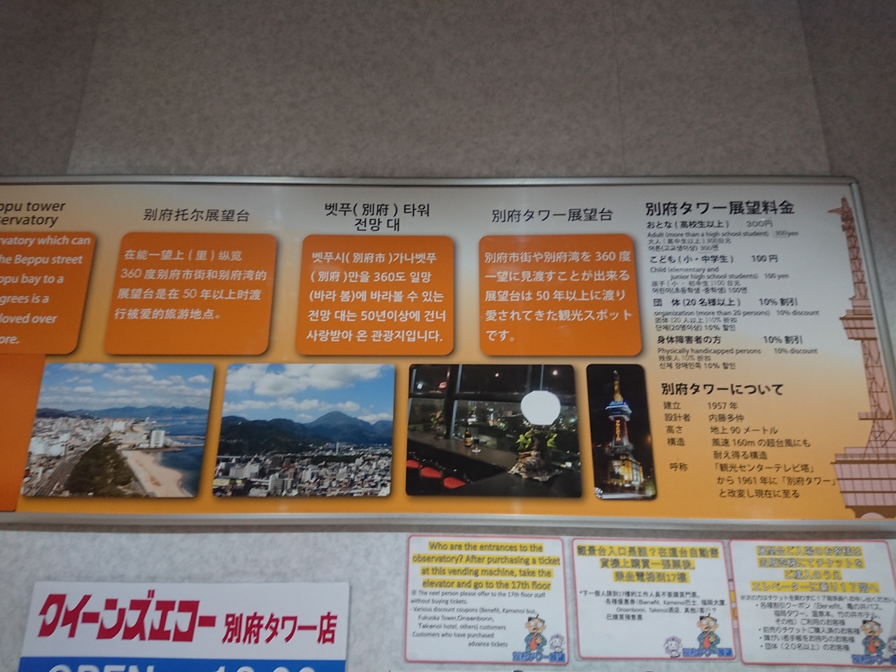 20タワースタンプラリー参加者は絶対に来なければなりませんが、それ以外でも別府に来る機会があれば見ておいて良かろうかと思い... 続きを読むます。 まずここで全体像を把握してから地獄めぐりなどをなさると、地理的関係が分かりやすくてよろしいでしょう。さんふらわあからは遠いですが、北浜バスターミナルからはすぐ、別府駅からもそんなに遠くないです。 閉じる