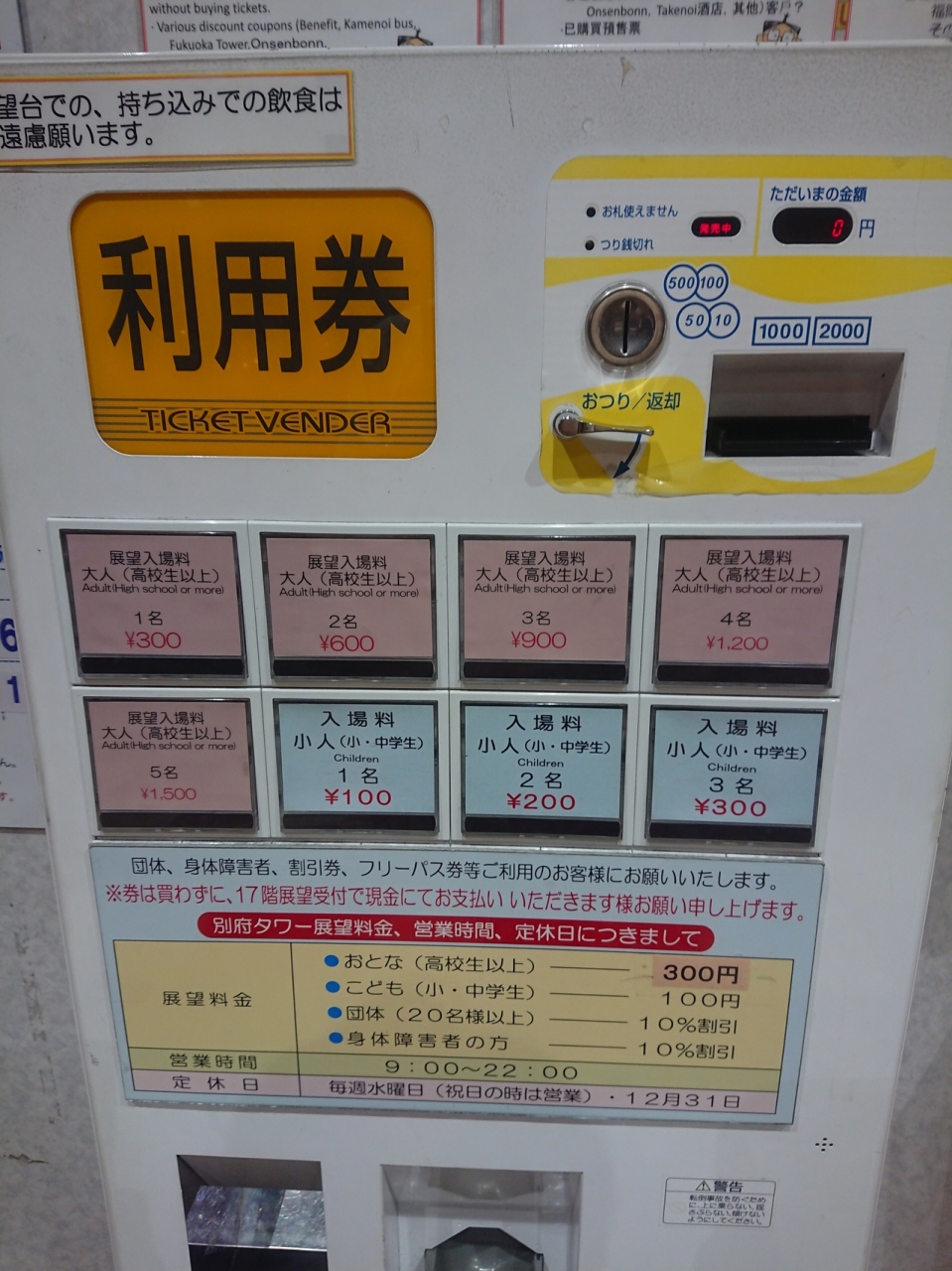 【2023年1月27日にリニューアルオープン】別府タワー 展望台入場チケット