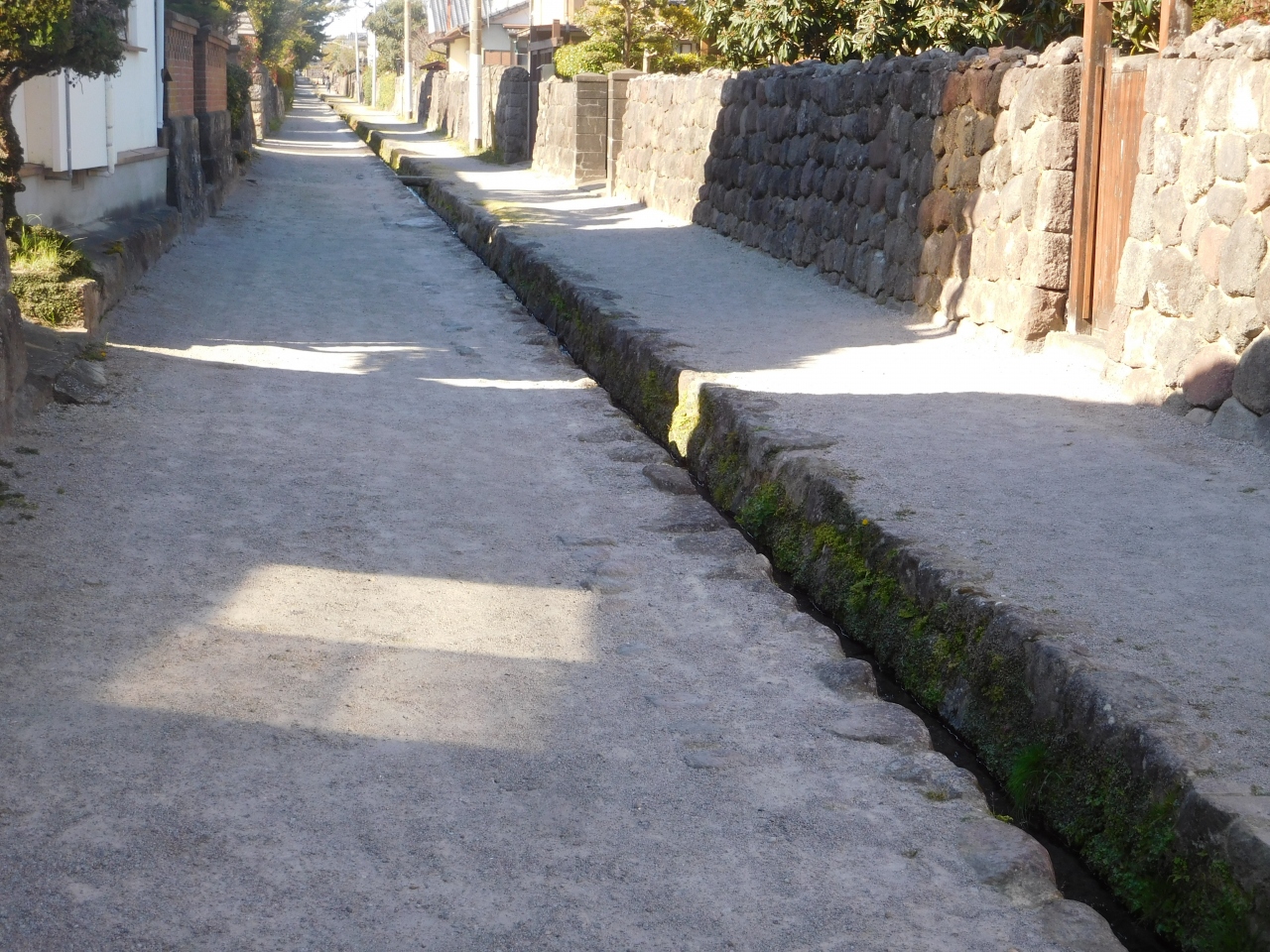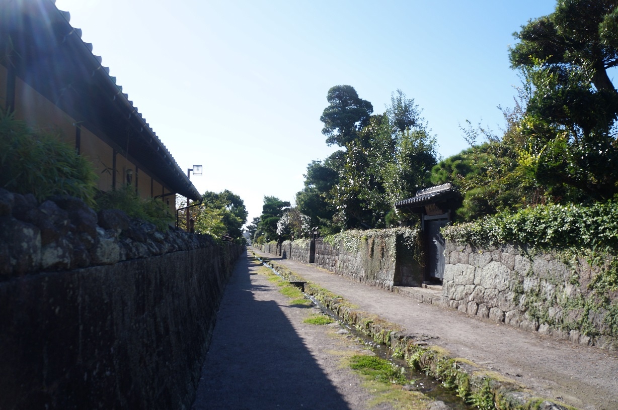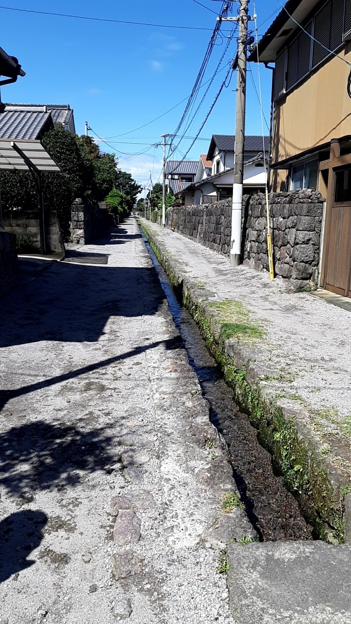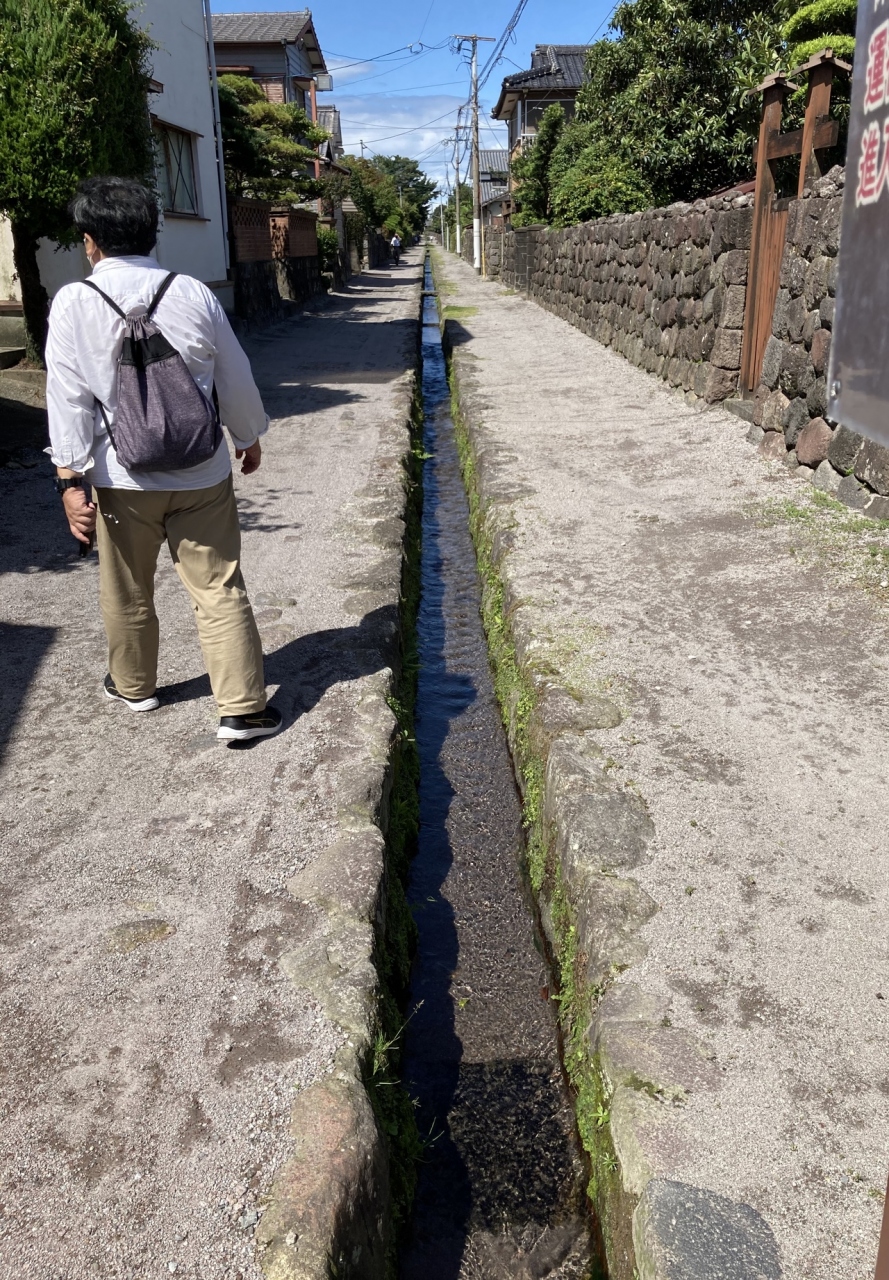 なお、勝手なイメージで、武家屋敷がずらりと並んでいるのかな??と想像していたのですが、、、砂利道のど真ん中に水路があり、おそらく普賢岳からの伏流水が流れ込んでいるようで、綺麗な水が流れていましたが、、、その脇の建物は普通の民家ばかり。