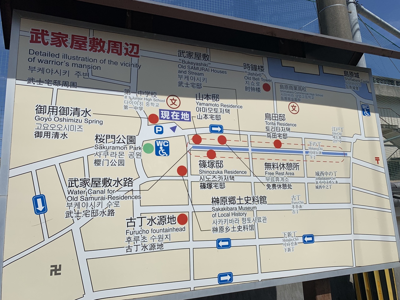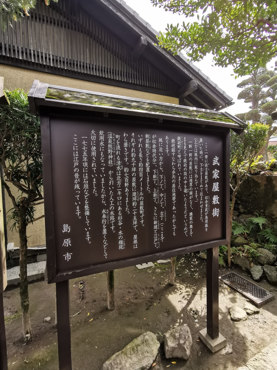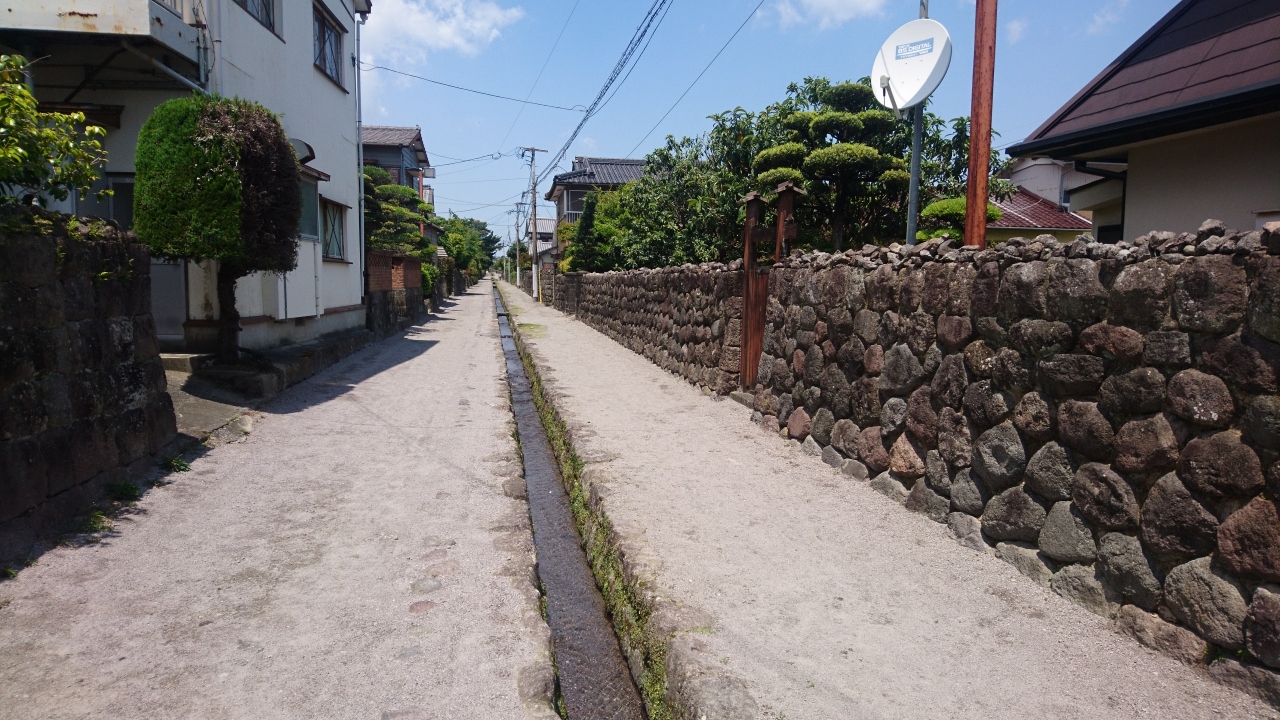 なお、勝手なイメージで、武家屋敷がずらりと並んでいるのかな??と想像していたのですが、、、砂利道のど真ん中に水路があり、おそらく普賢岳からの伏流水が流れ込んでいるようで、綺麗な水が流れていましたが、、、その脇の建物は普通の民家ばかり。