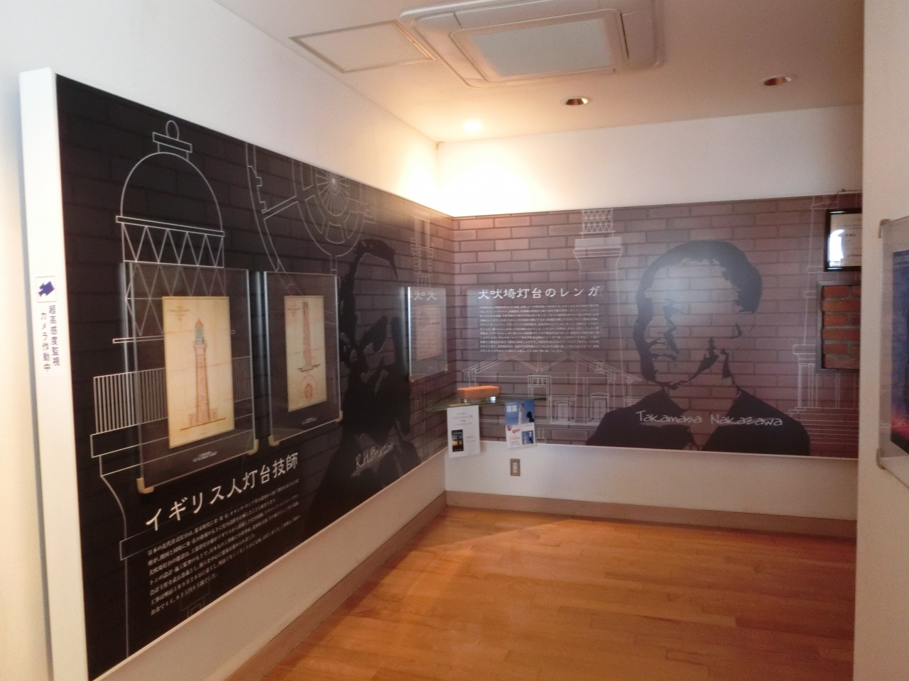 資料館には、設計したはイギリス人灯台技師、リチャード・ヘンリー・ブラントンの紹介があります。27歳でイギリスより来日し、26の灯台、5箇所の灯竿、2艘の灯船などを建設し、日本における灯台体系の基礎を築き上げました。