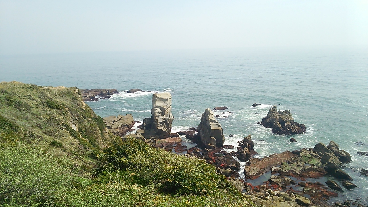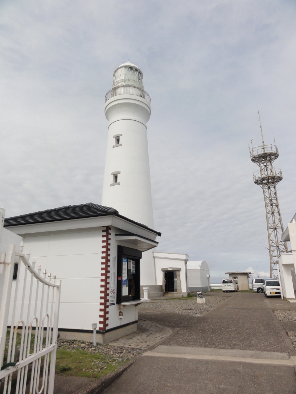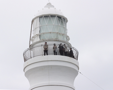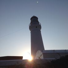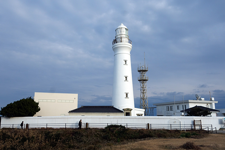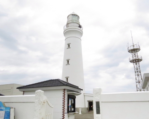 犬吠埼灯台は、銚子半島の最東端、太平洋に突き出た岬にあります。三方を海に囲まれた高さ約20mの海食台地の突端、海抜52mの白亜の灯台です。犬吠埼の探勝の中心地にあります。光遠距離19.5海里、15秒ごとに1閃光を放って露信号、無線方位信号も放つことができます。慶応2年(1866年)日本、イギリス、フランス、アメリカ、オランダの間に結ばれた条約に基づいて建造され、設計はイギリス人技師ブラントンで初めて日本製のレンガを使用した灯台です。