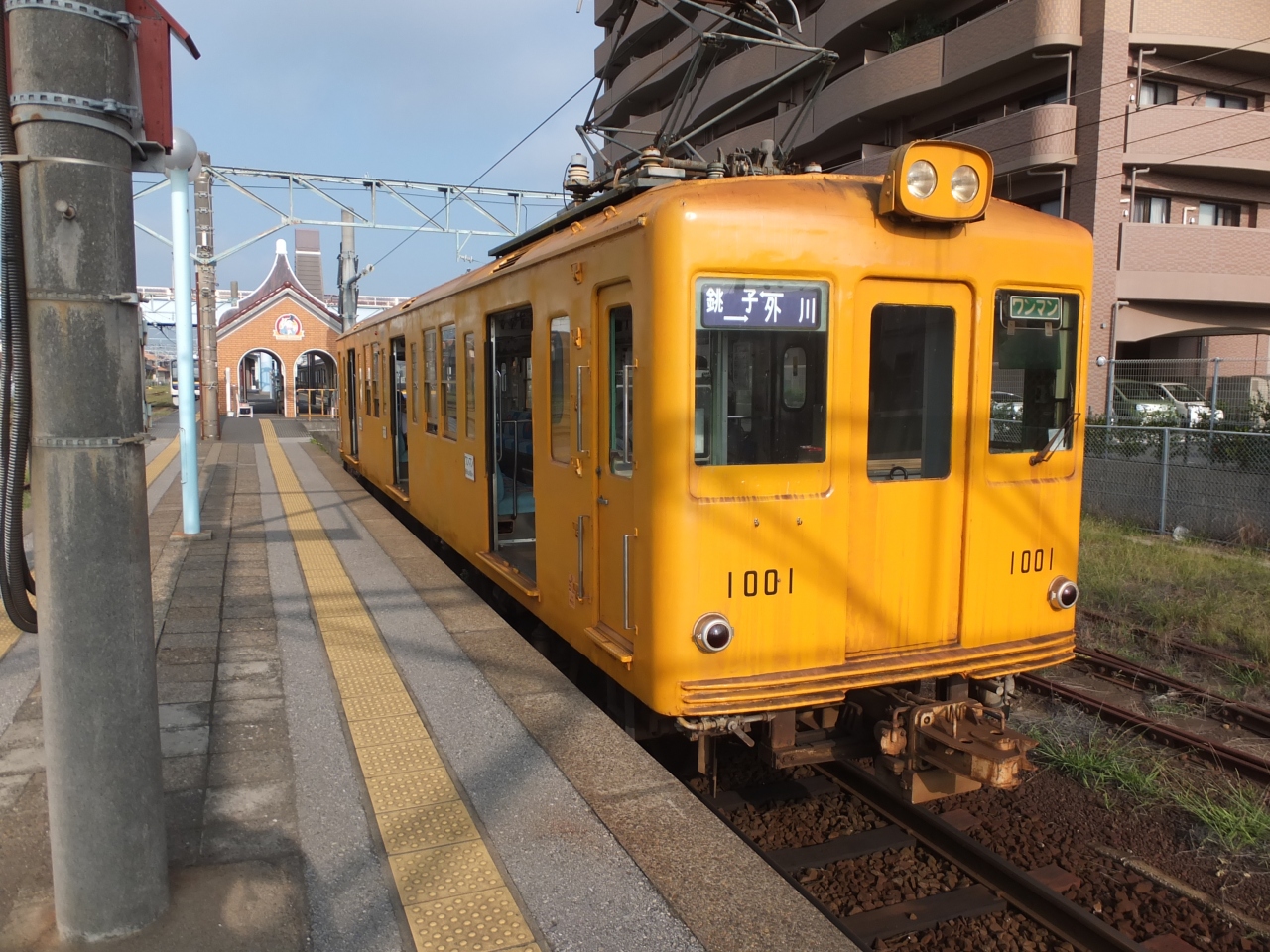 たまたまか,いつもかはわかりませんが,銚子07:17-07:34犬吠埼の電車はデハ1001でした。土曜日の早朝と言うことで,電車はガラガラでした。