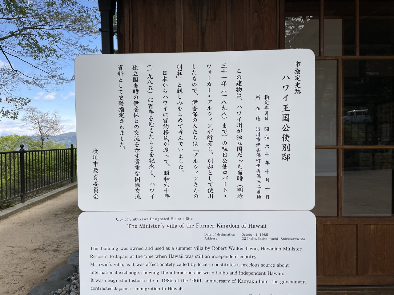 彼は日本人女性と結婚し81歳でなくなるまで日本で暮らしましたが、蒸し暑い日本の夏を快適に過ごすための保養地を探していて伊香保と出合います。ここで購入した別荘の一部は現在も伊香保に残されており、現在では市指定史跡「ハワイ王国公使別邸」となっています。