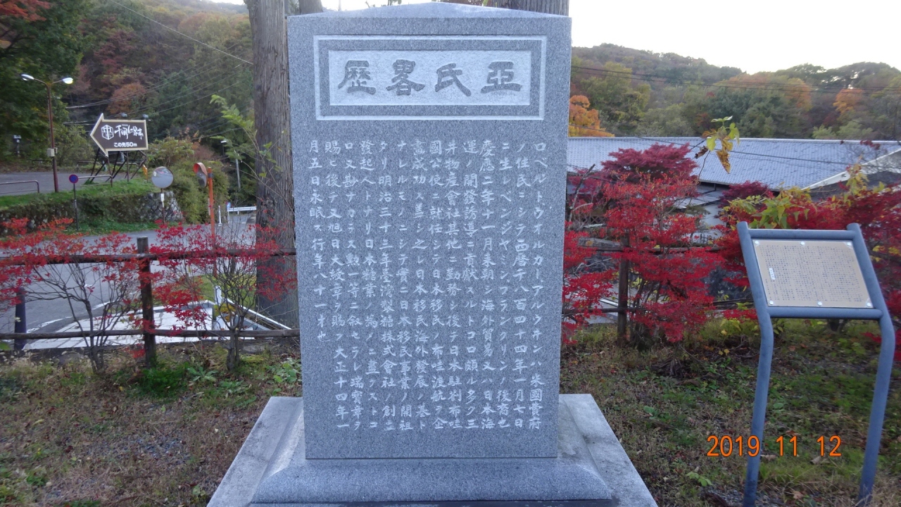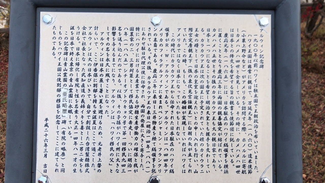 近くに、アルウィン氏(亜氏)の略歴の碑もあります。
