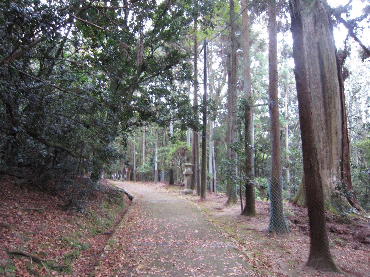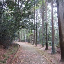 遊歩道の片隅に「聖天宮」と彫り込まれた古い石碑。