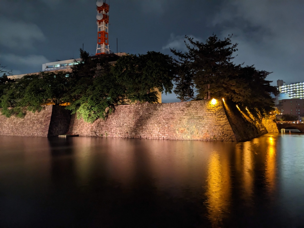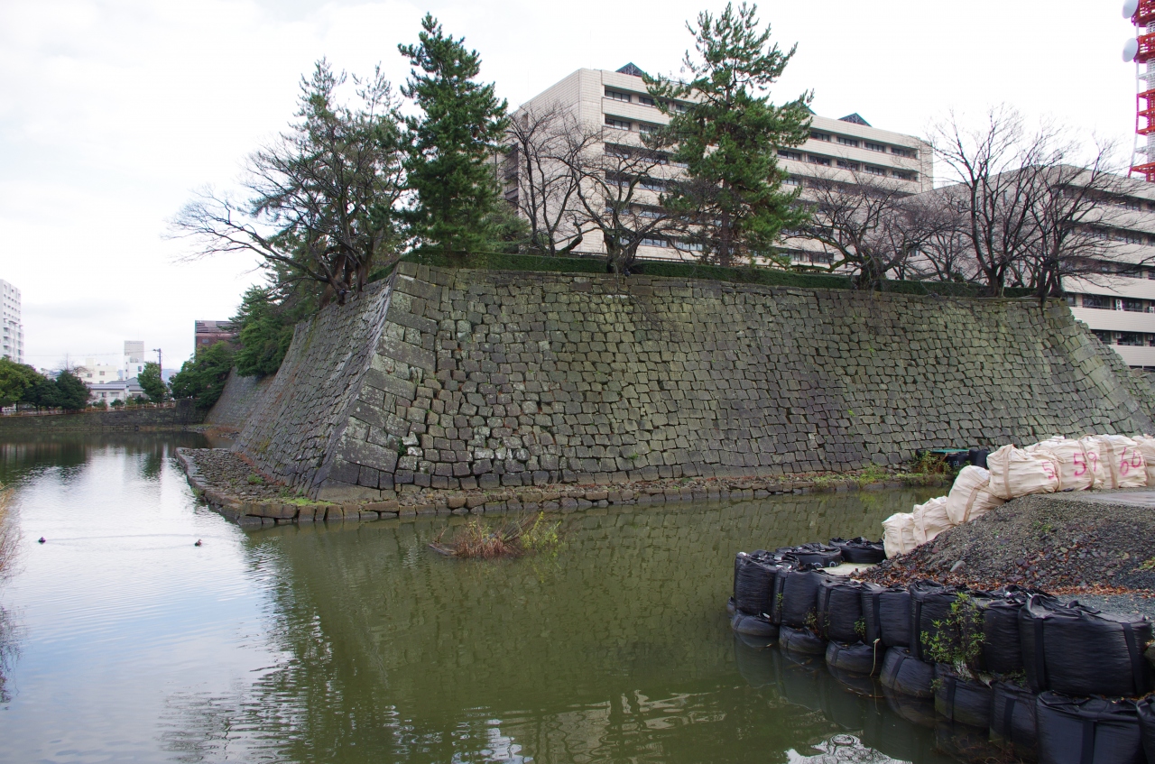 堀と石垣、それに井戸が残っていますが、建物は消失してしまいました。 敷地の一部は史跡として保存されているようですが、本丸... 続きを読むだった場所には県庁のビルが建っています。かつての為政者の後(跡)に県庁というのは、なんだか県が権力者にとってかわったようでいい気がしませんでした。それに石垣と四角い没個性のビルというのはミスマッチ。石垣が見事なだけに、公園とか芸術発信拠点とか、別な用途にすればよかったのに…。 閉じる