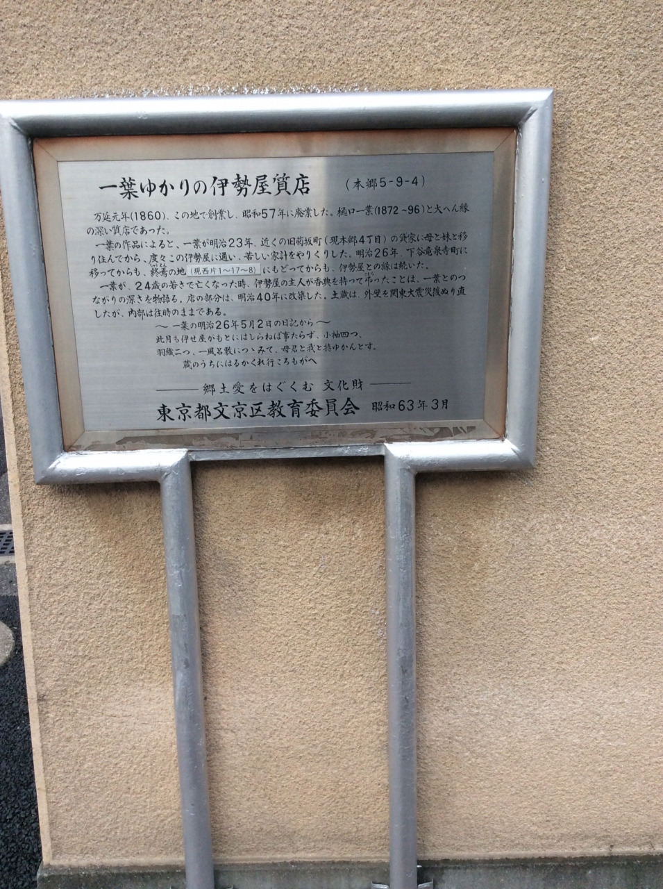 文京区本郷4丁目と5丁目の境界を通る菊坂界隈には文学関連のものが多く、その一つがここ「一葉ゆかりの伊勢屋質店」で菊坂沿い... 続きを読むにあります。