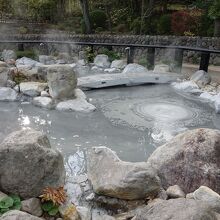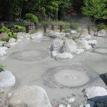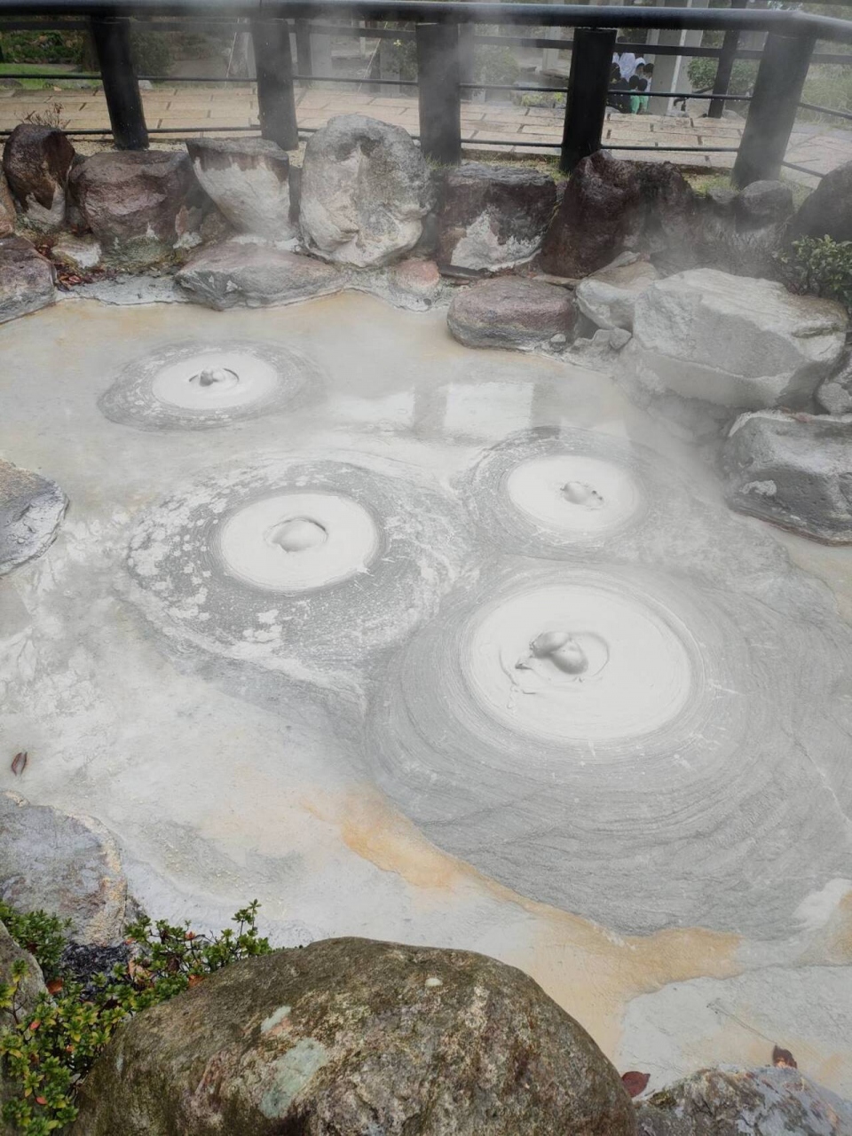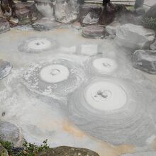 灰色の丸い熱泥から鬼石坊主と名付けられた地獄