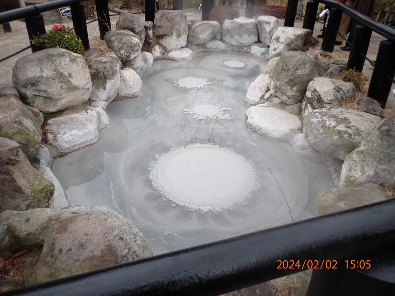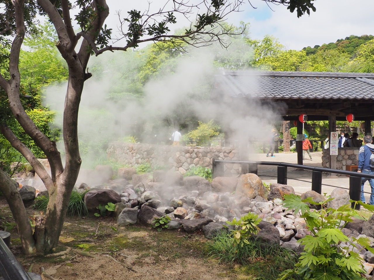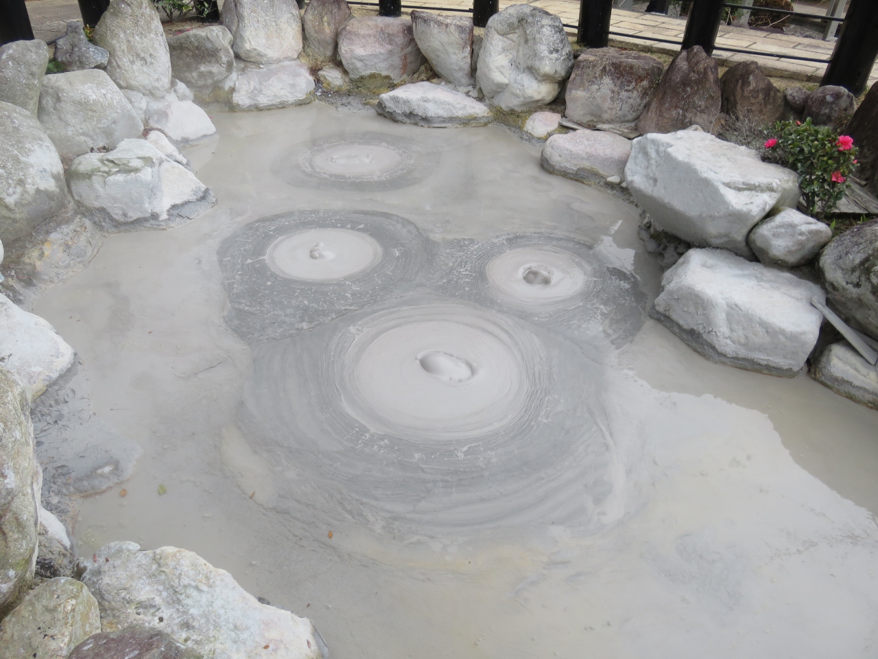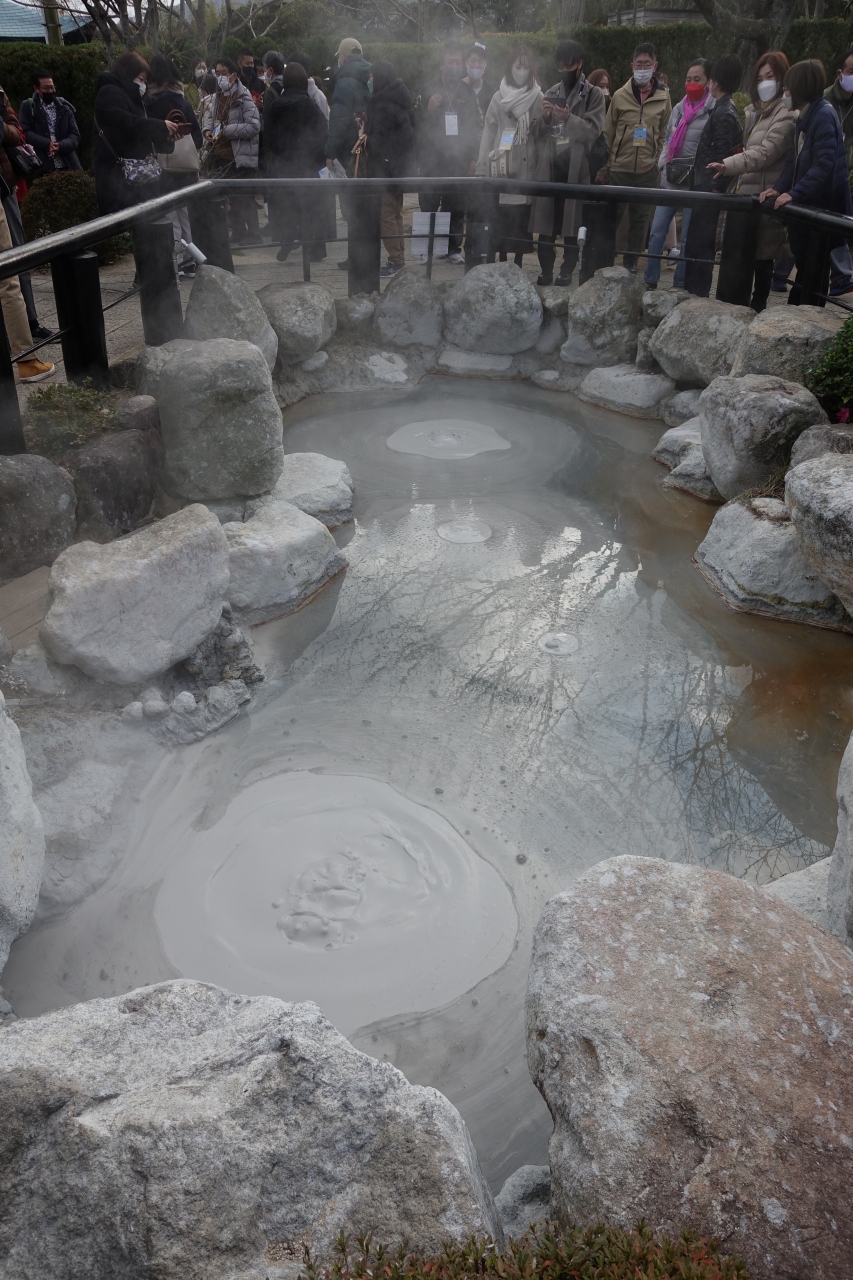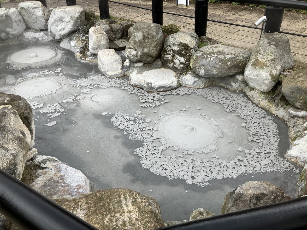 九州横断道路そばに広い無料駐車場があります。駐車場の奥に海地獄と並んで鬼石坊主地獄があります。別府地獄めぐり共通券で入場し... 続きを読むました。733年ごろに書かれた豊後風土記に出てくるほど歴史が古く、明治以降、新坊主地獄として人気がありました。昭和に一旦閉鎖されましたが、2002年に約40年ぶりにリニューアルオープンしました。灰色の熱泥が沸騰して、ぼこっと丸く盛り上がる様子が坊主頭に似ていることから鬼石坊主地獄と呼ばれるようになったそうです。温度は約99度、泉質はナトリウム、塩化物泉です。入口近くに鬼の高いびきと名付けられた、噴気が勢いよく吹き上る間欠泉があります。園内のところどころに坊主地獄がありそれぞれぼこぼこと湧き上がっていました。想像したよりも小さめの坊主でした。楕円形の足湯の泉質はナトリウム、塩化物泉で水深は浅かったです。 閉じる