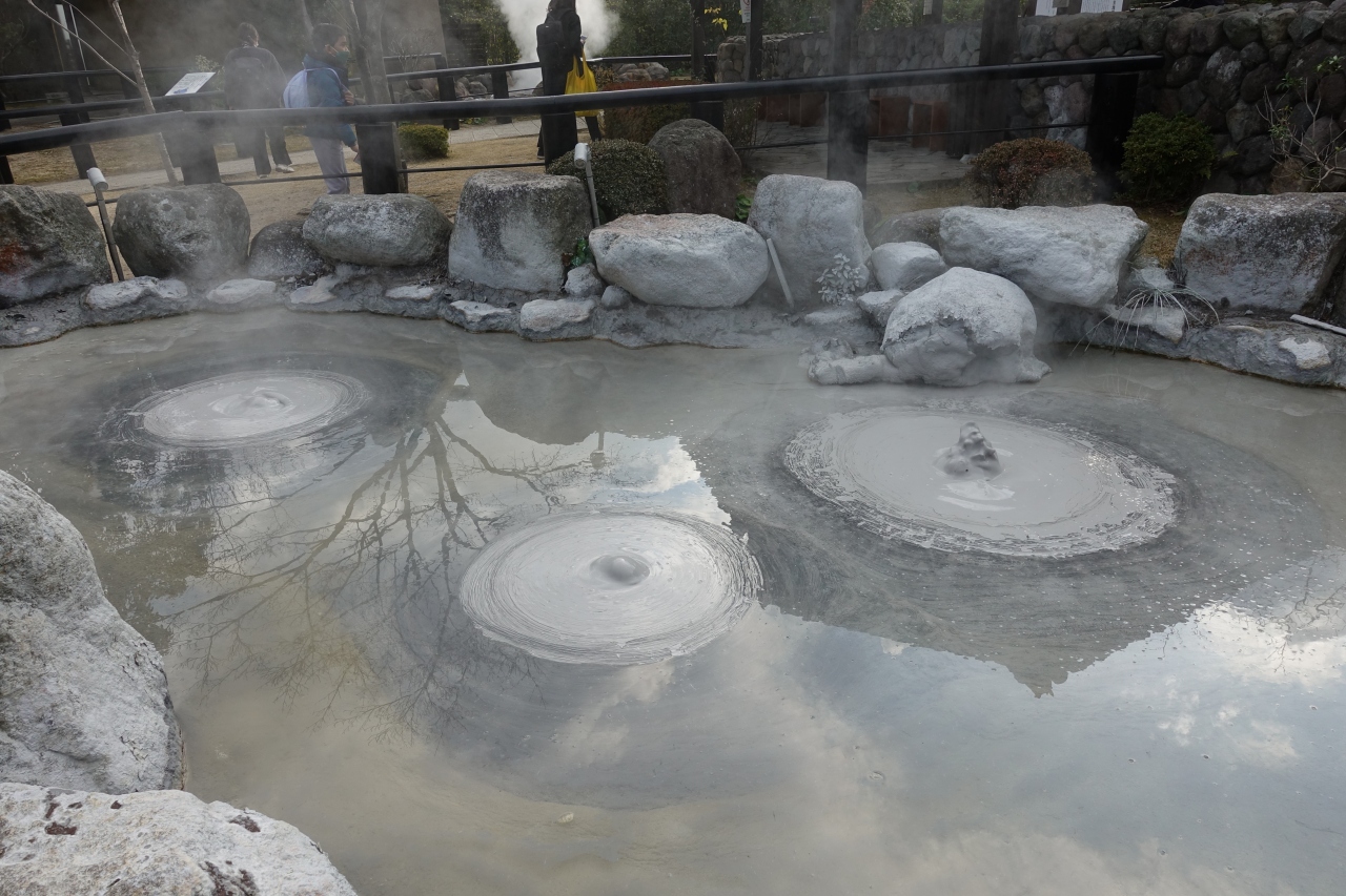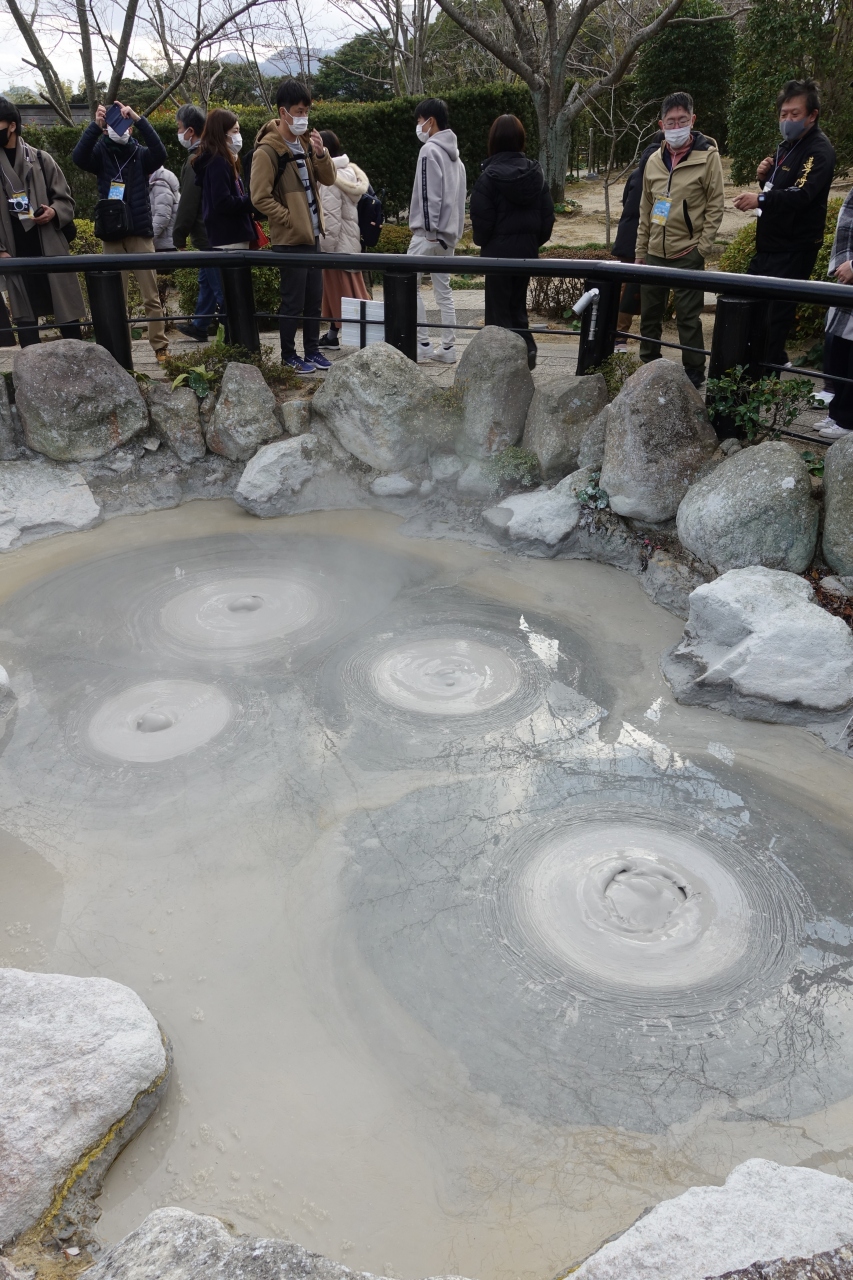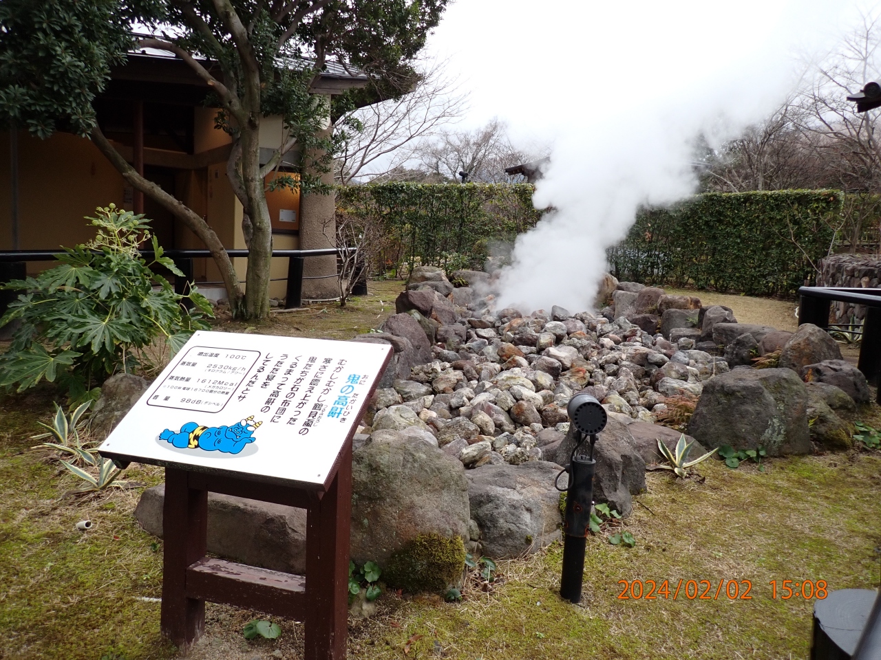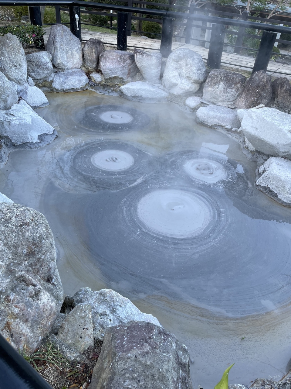 九州横断道路そばに広い無料駐車場があります。駐車場の奥に海地獄と並んで鬼石坊主地獄があります。別府地獄めぐり共通券で入場し... 続きを読むました。733年ごろに書かれた豊後風土記に出てくるほど歴史が古く、明治以降、新坊主地獄として人気がありました。昭和に一旦閉鎖されましたが、2002年に約40年ぶりにリニューアルオープンしました。灰色の熱泥が沸騰して、ぼこっと丸く盛り上がる様子が坊主頭に似ていることから鬼石坊主地獄と呼ばれるようになったそうです。温度は約99度、泉質はナトリウム、塩化物泉です。入口近くに鬼の高いびきと名付けられた、噴気が勢いよく吹き上る間欠泉があります。園内のところどころに坊主地獄がありそれぞれぼこぼこと湧き上がっていました。想像したよりも小さめの坊主でした。楕円形の足湯の泉質はナトリウム、塩化物泉で水深は浅かったです。 閉じる