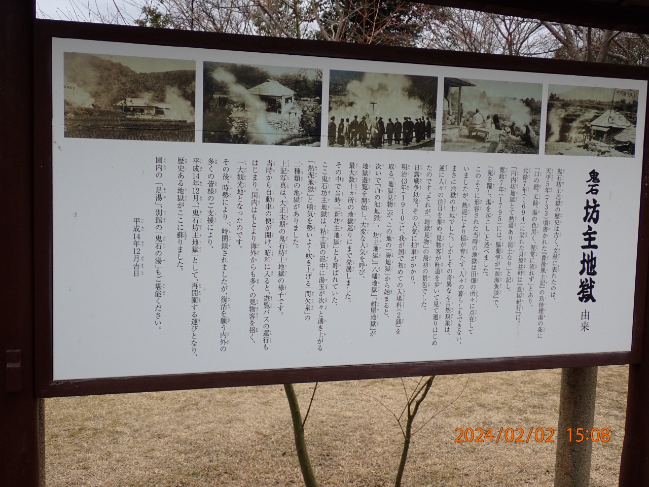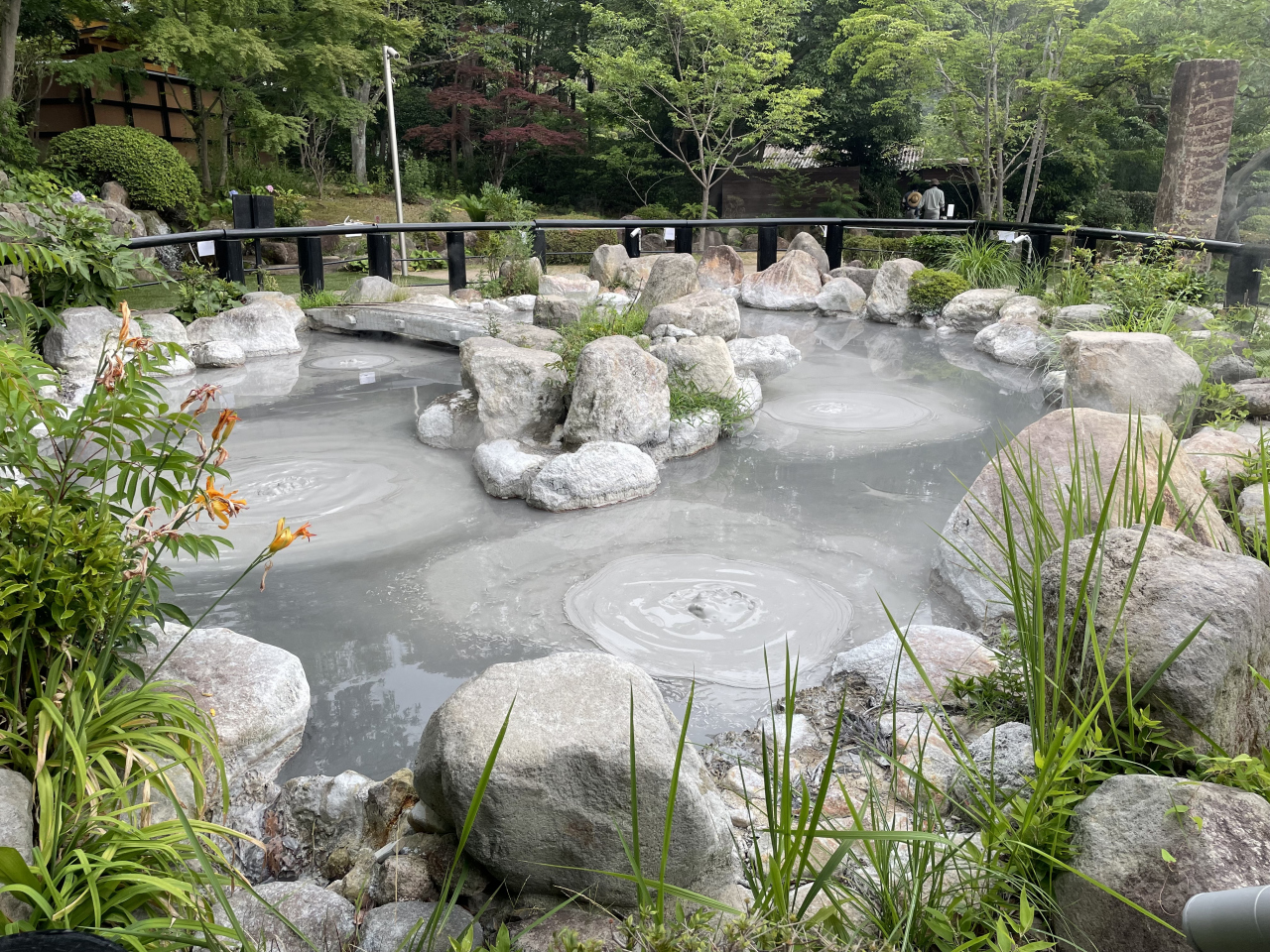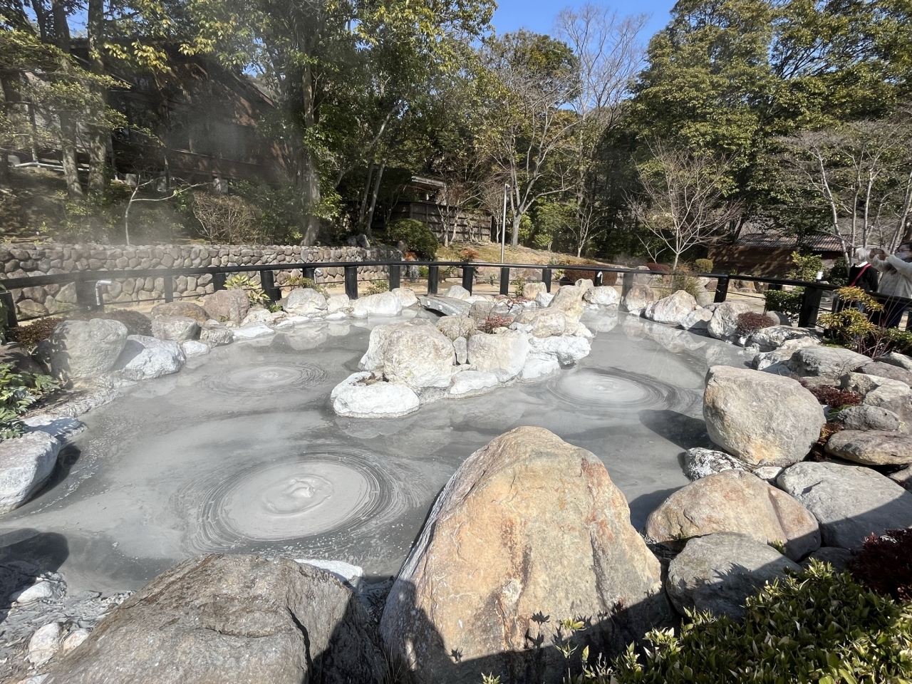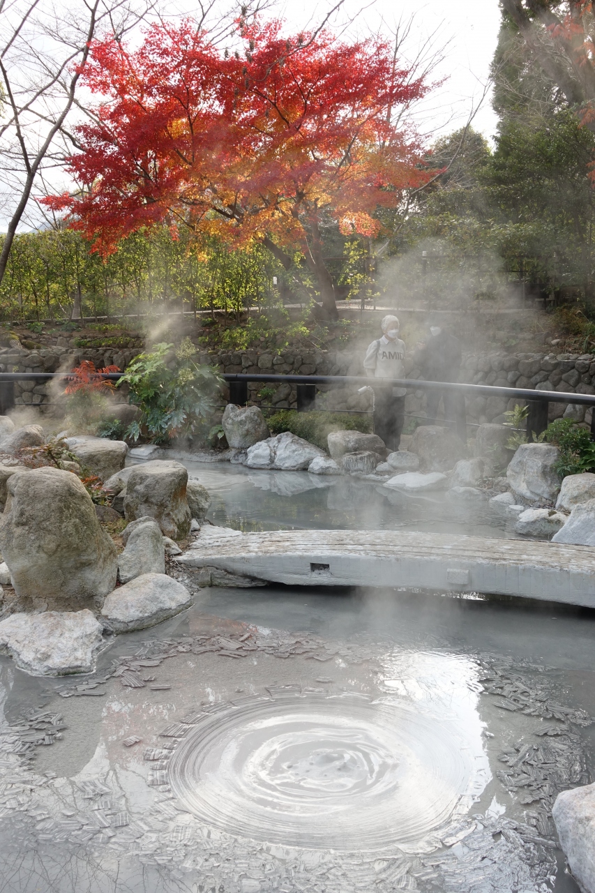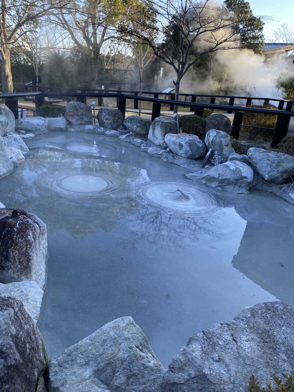九州横断道路そばに広い無料駐車場があります。駐車場の奥に海地獄と並んで鬼石坊主地獄があります。別府地獄めぐり共通券で入場し... 続きを読むました。733年ごろに書かれた豊後風土記に出てくるほど歴史が古く、明治以降、新坊主地獄として人気がありました。昭和に一旦閉鎖されましたが、2002年に約40年ぶりにリニューアルオープンしました。灰色の熱泥が沸騰して、ぼこっと丸く盛り上がる様子が坊主頭に似ていることから鬼石坊主地獄と呼ばれるようになったそうです。温度は約99度、泉質はナトリウム、塩化物泉です。入口近くに鬼の高いびきと名付けられた、噴気が勢いよく吹き上る間欠泉があります。園内のところどころに坊主地獄がありそれぞれぼこぼこと湧き上がっていました。想像したよりも小さめの坊主でした。楕円形の足湯の泉質はナトリウム、塩化物泉で水深は浅かったです。 閉じる