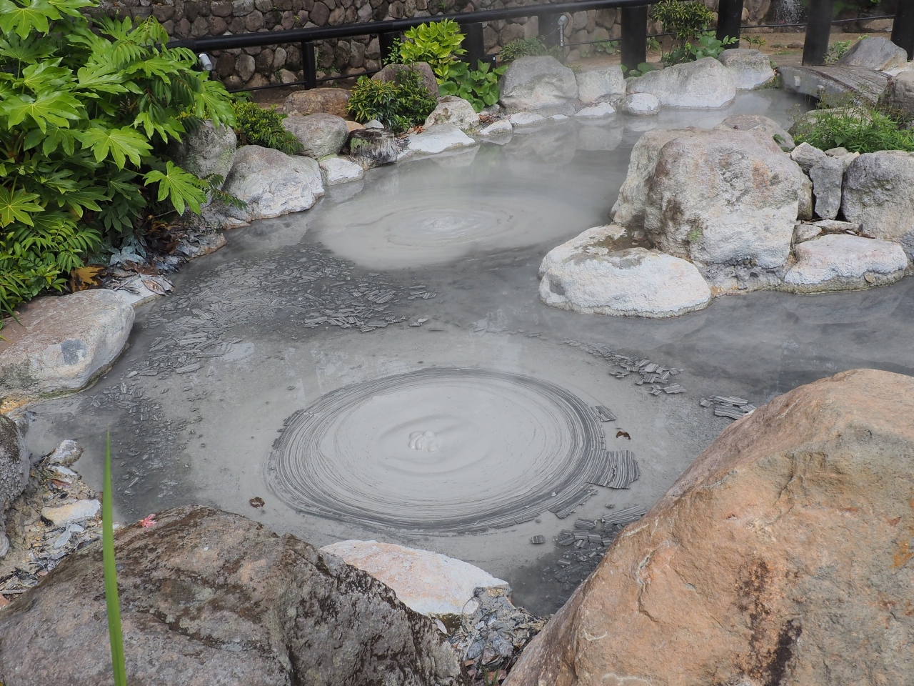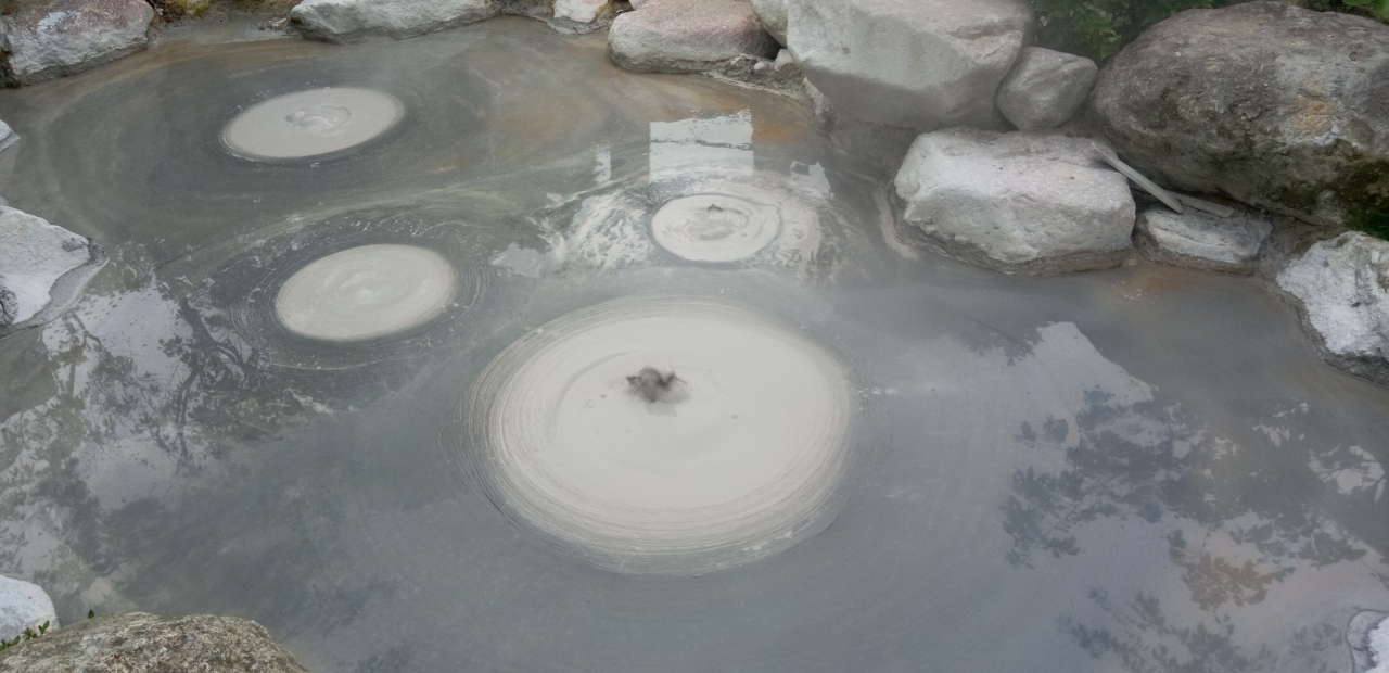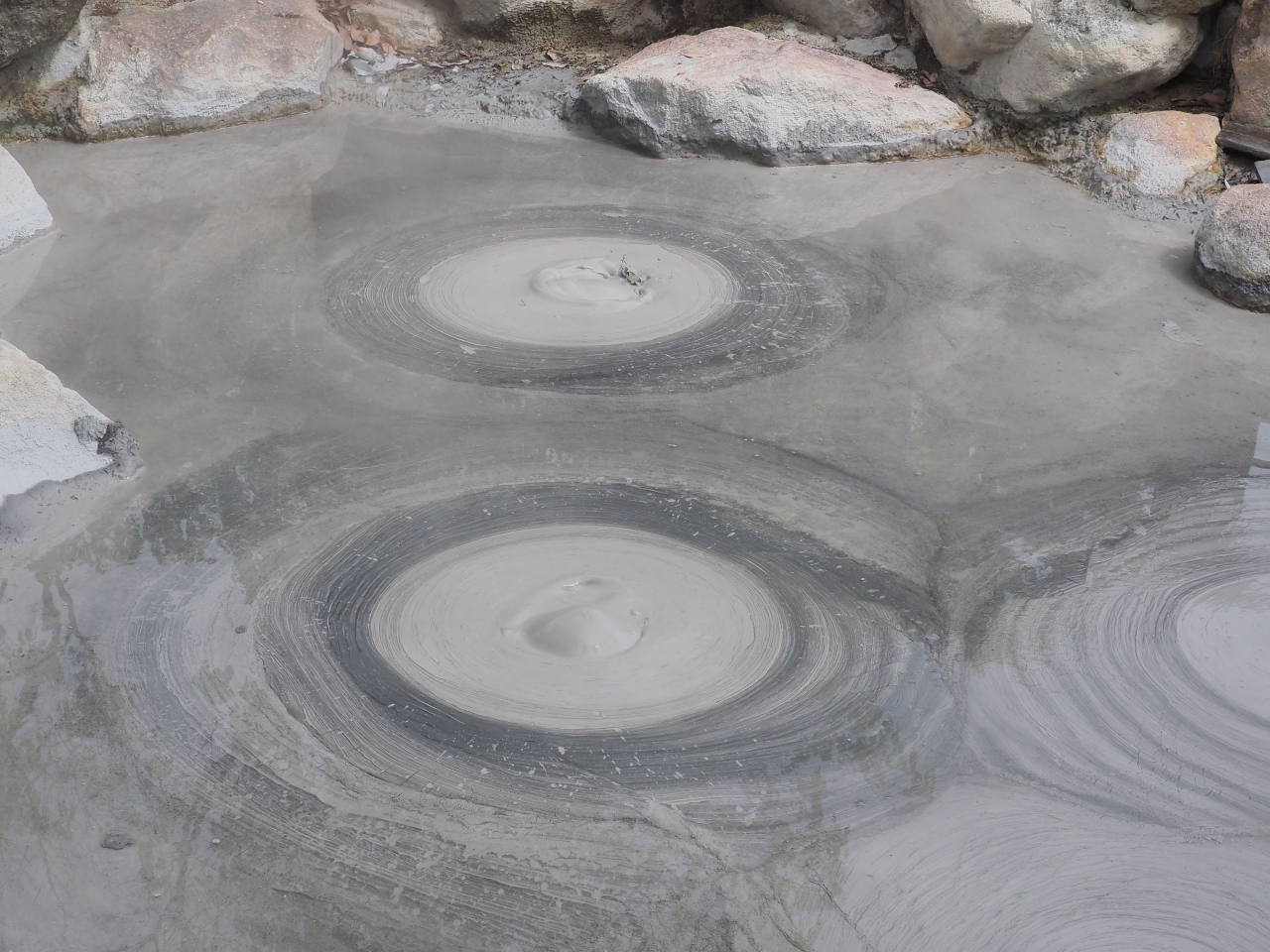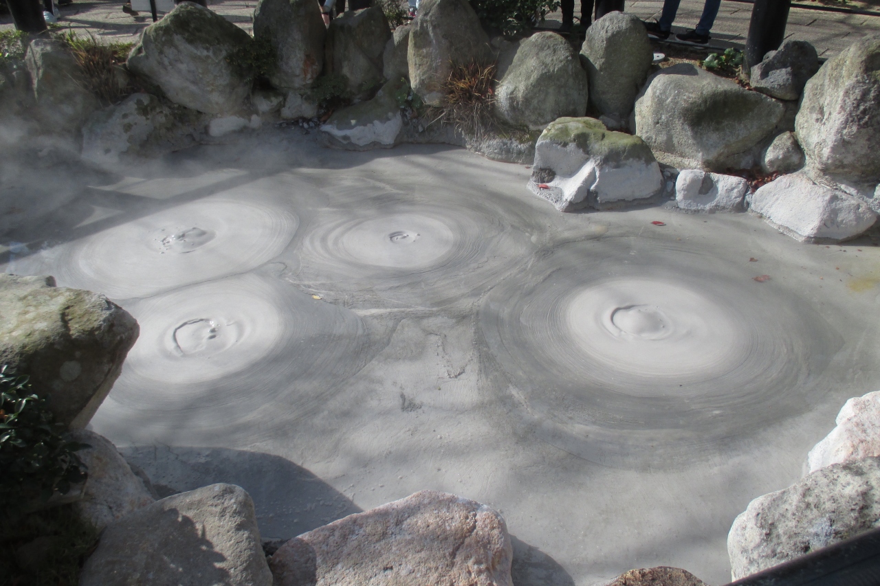 泥が球状に噴き出す様が坊主頭のよう@坊主地獄
