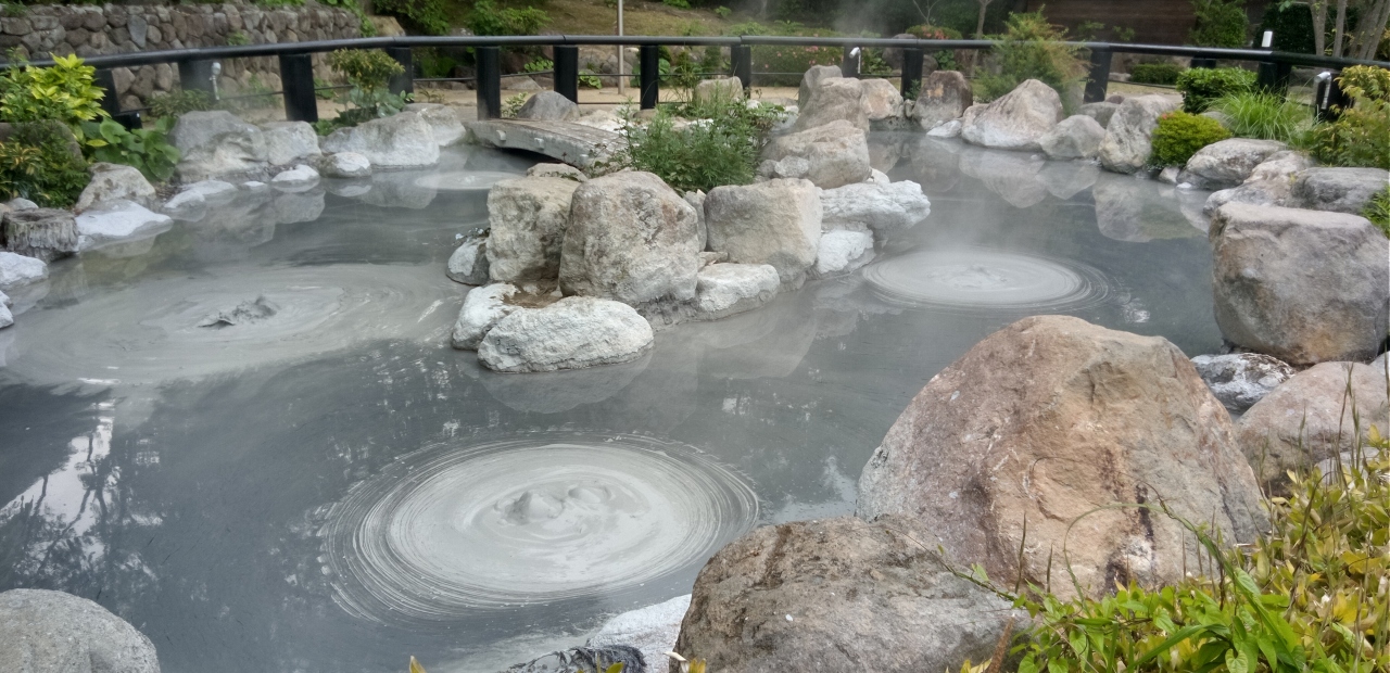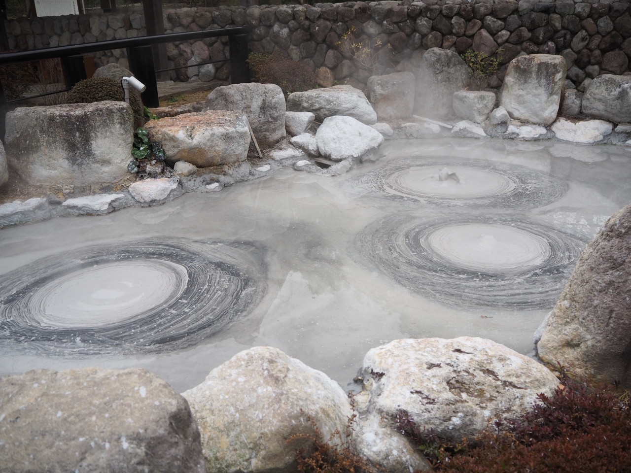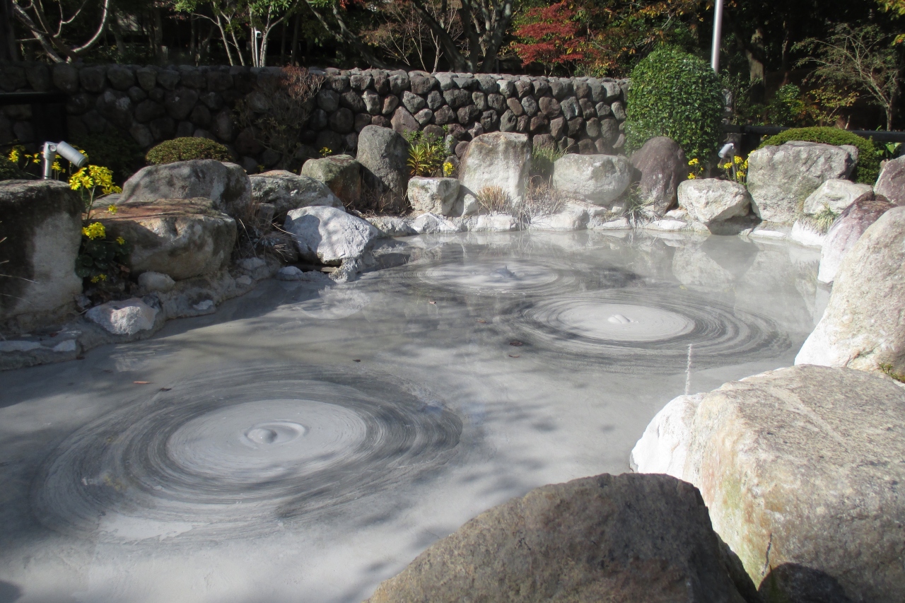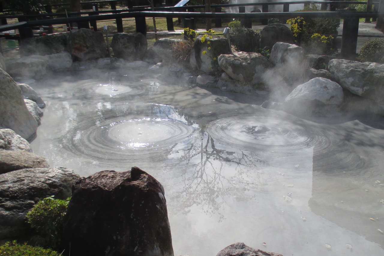 泥が球状に噴き出す様が坊主頭のよう@坊主地獄