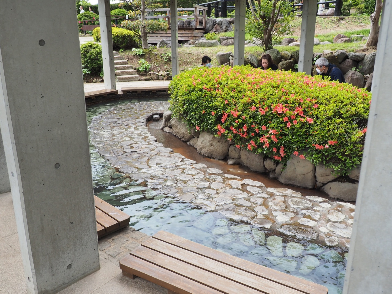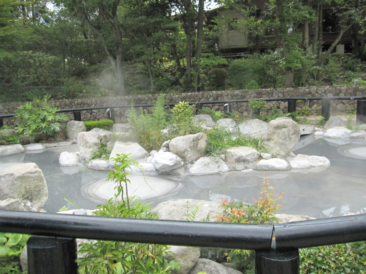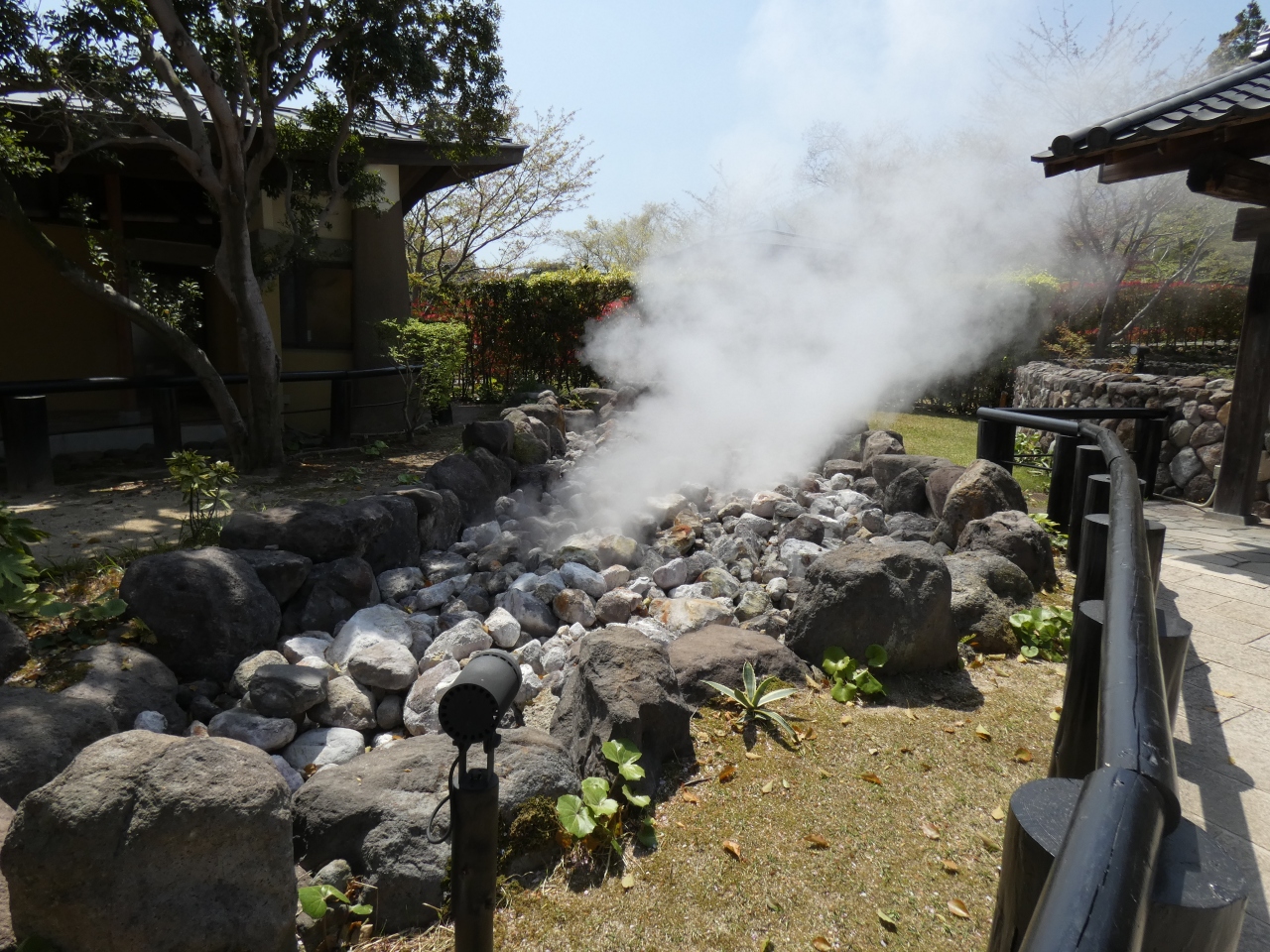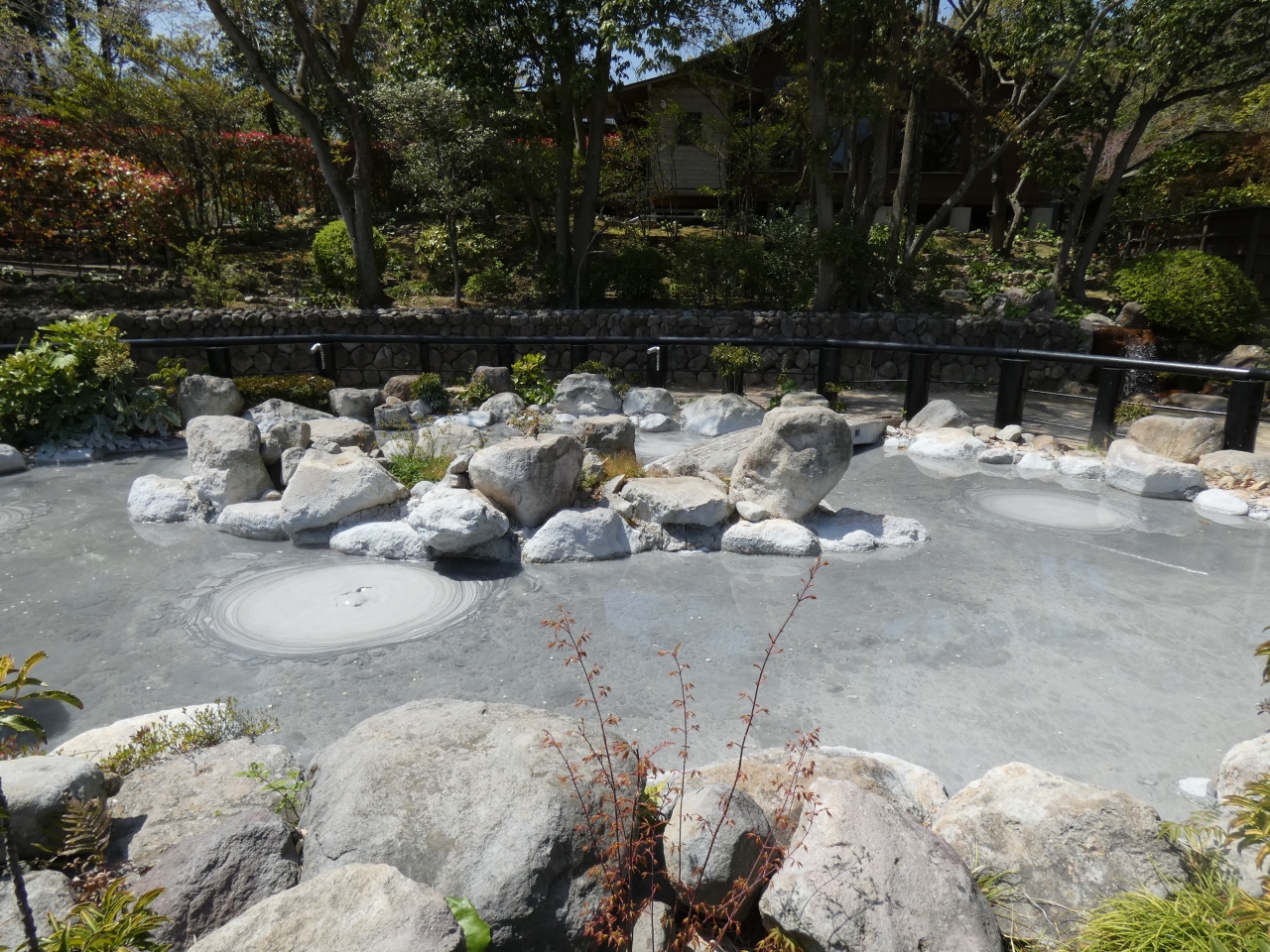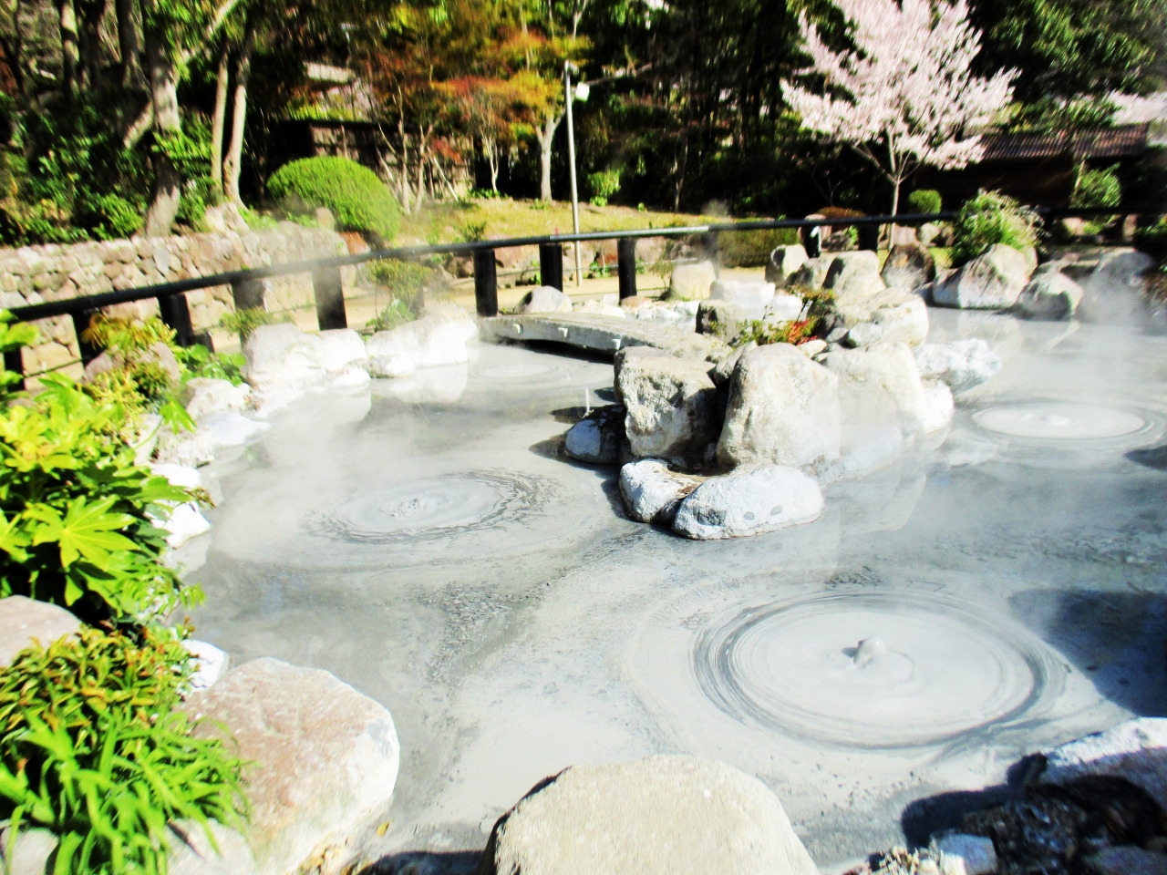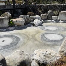 整備された庭園内のあちらこちらで湧き出る坊主地獄です