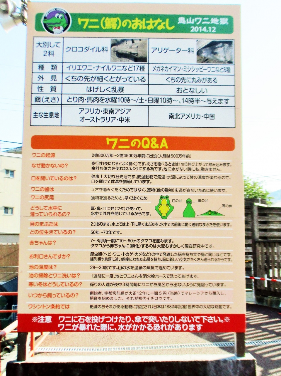 温泉の湧く小さな池からは蒸気があがりますが、ただそれだけ。 ここのウリは飼育されているワニのようです。でも、ワニのいる場... 続きを読む所は普通のプール。温泉の温まった水を利用して飼育しているということのようで、地獄の熱い池にワニがいるわけではありません。ワニの尻尾で熱泉のしぶきをかけられて熱い熱いと騒ぐのとかを想像して楽しみにしていたのですが…。 閉じる
