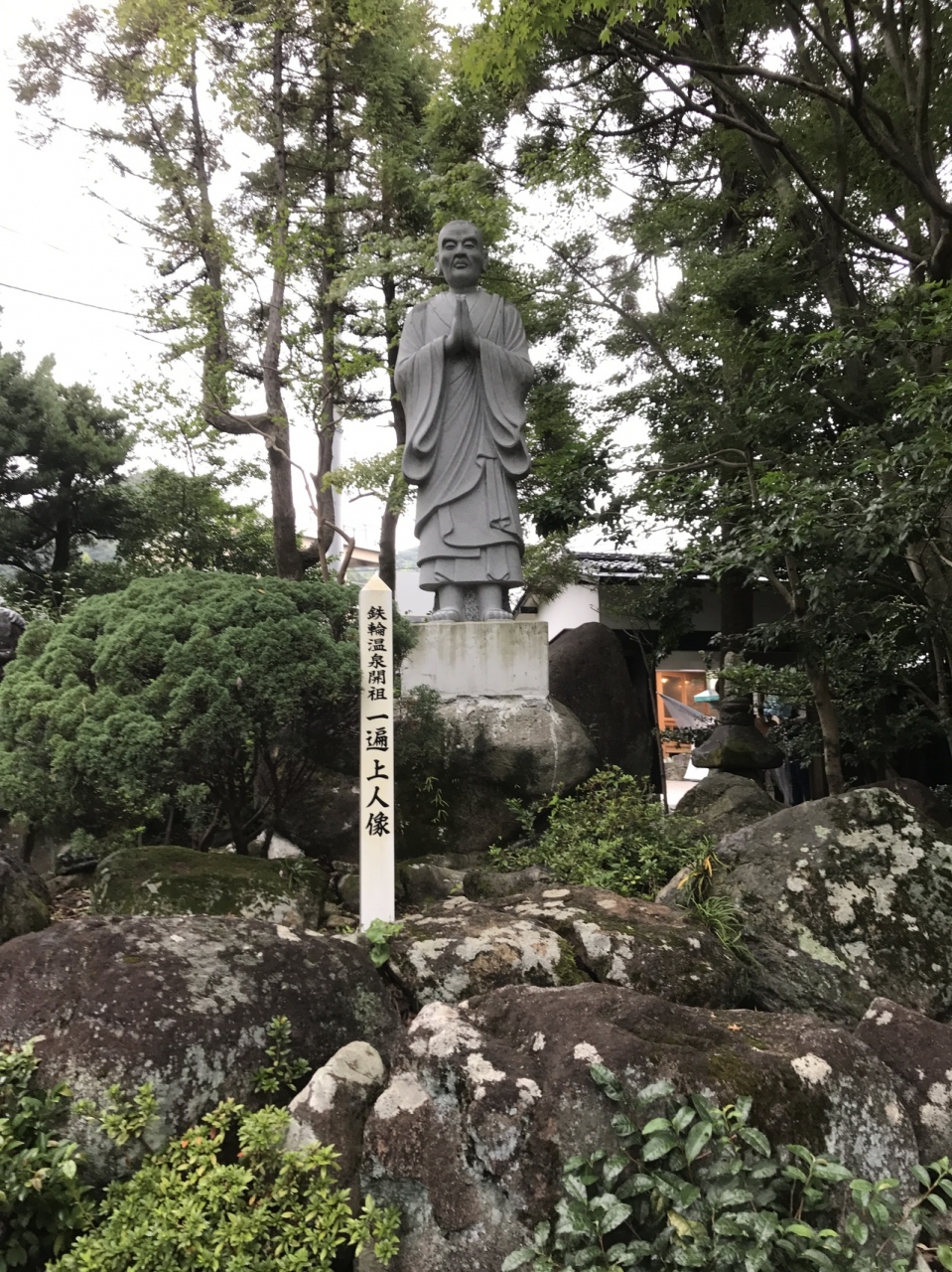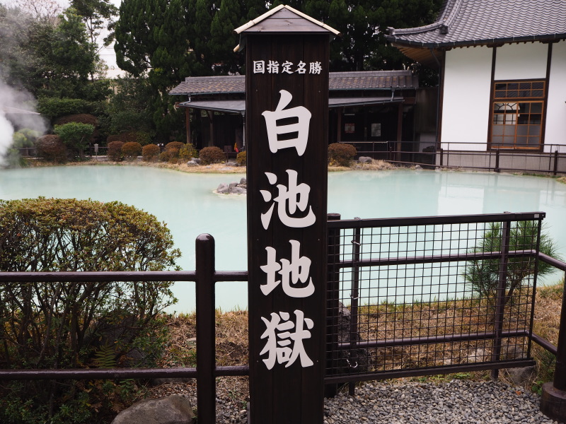 和風庭園の中にある巨大魚が展示されている白池地獄です。
