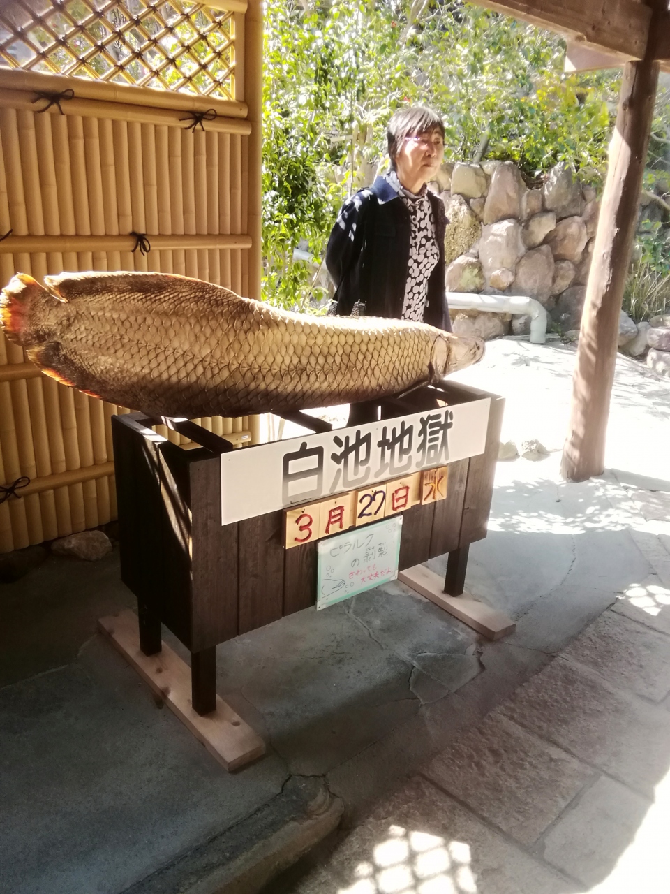 別府市観光で立ち寄りました。白池地獄は、定期観光バス 別府地獄めぐりコース (亀の井バス)の5番目の立ち寄りスポットです。... 続きを読む白池地獄そのものは特に派手さは無く、印象に残ったのは敷地内にある熱帯魚館のピラニアやアマゾンの大王魚であるピラルクでした。 閉じる