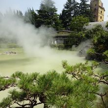 その名のとおり、白い色の池です。温熱で熱帯魚を飼っていて、アロワナなどが見られます。