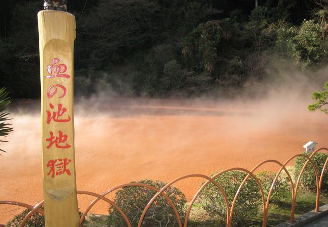 真っ赤な湯が湧き出す見ごたえ十分な血の池地獄