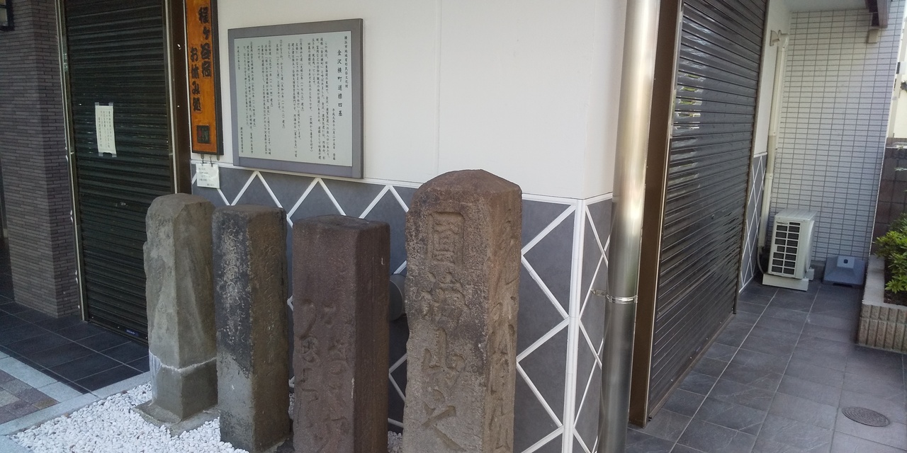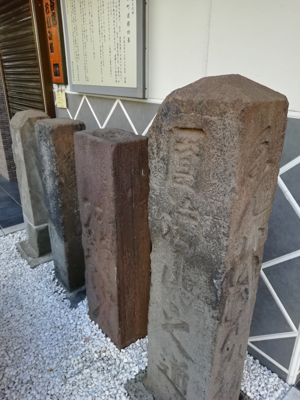 マンションの一角にあります。周辺には問屋場、高札場跡の説明板もありました。