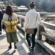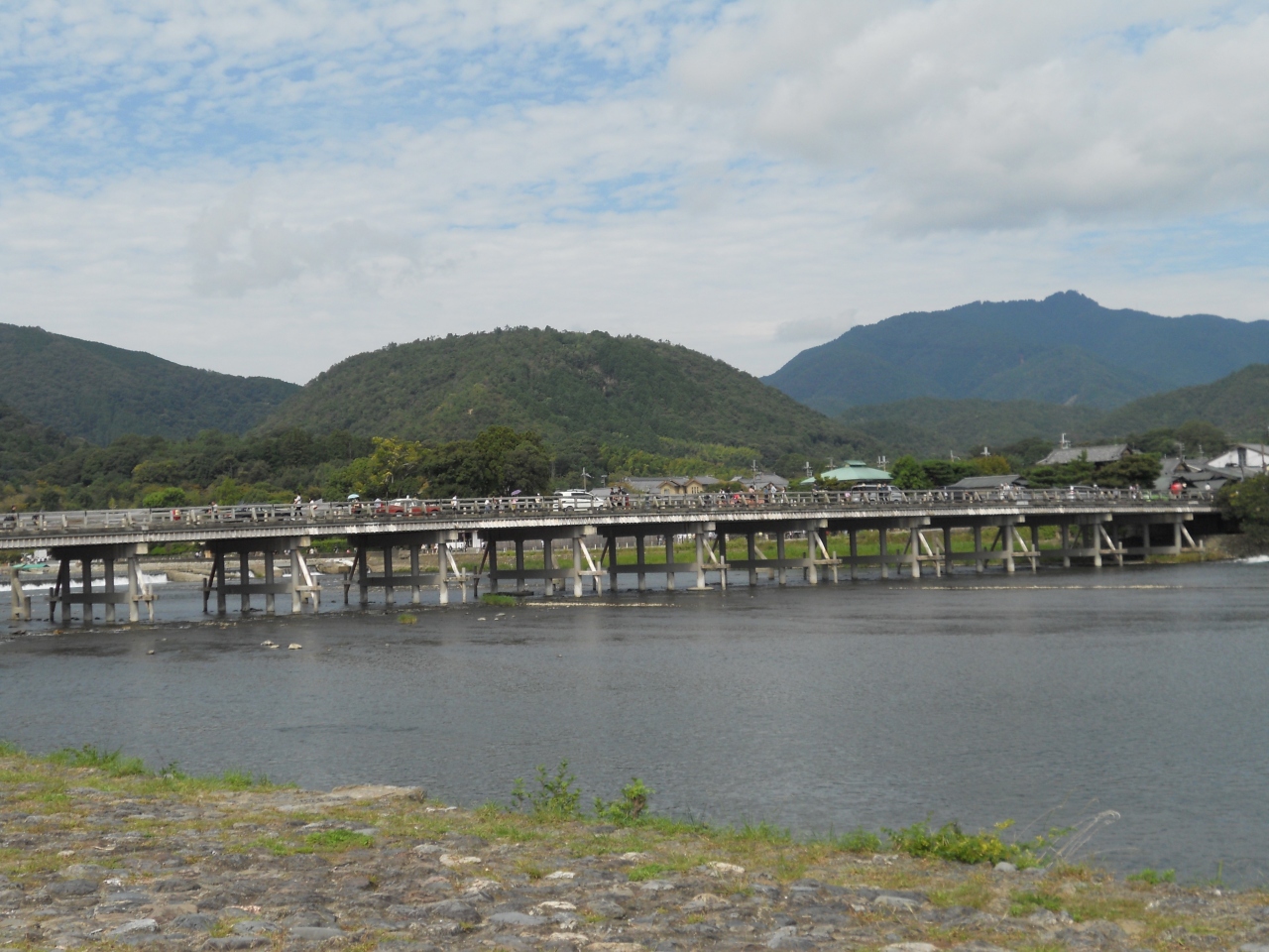 京都の観光名所として必ず出てくる渡月橋。京都には学生時代に住んだこともあるしその後も何度も観光に行ったこともあるのにまだ一... 続きを読む度も行ったことが無かったので今回初訪問。 紅葉や桜はないけれどTVや雑誌で見るのと同じ風情のある橋でした。 桂川に架かる橋かと思っていたら大堰川と書かれていたので、調べてみるとこの橋の上流を大堰川、下流を桂川という説やその他いろいろあって結局はっきりしません。1000年以上の歴史を持つ橋には色々な歴史が刻まれているのでしょう~ 閉じる