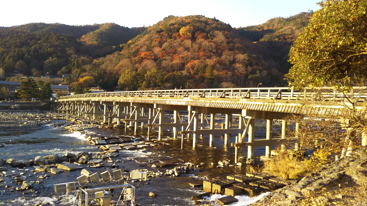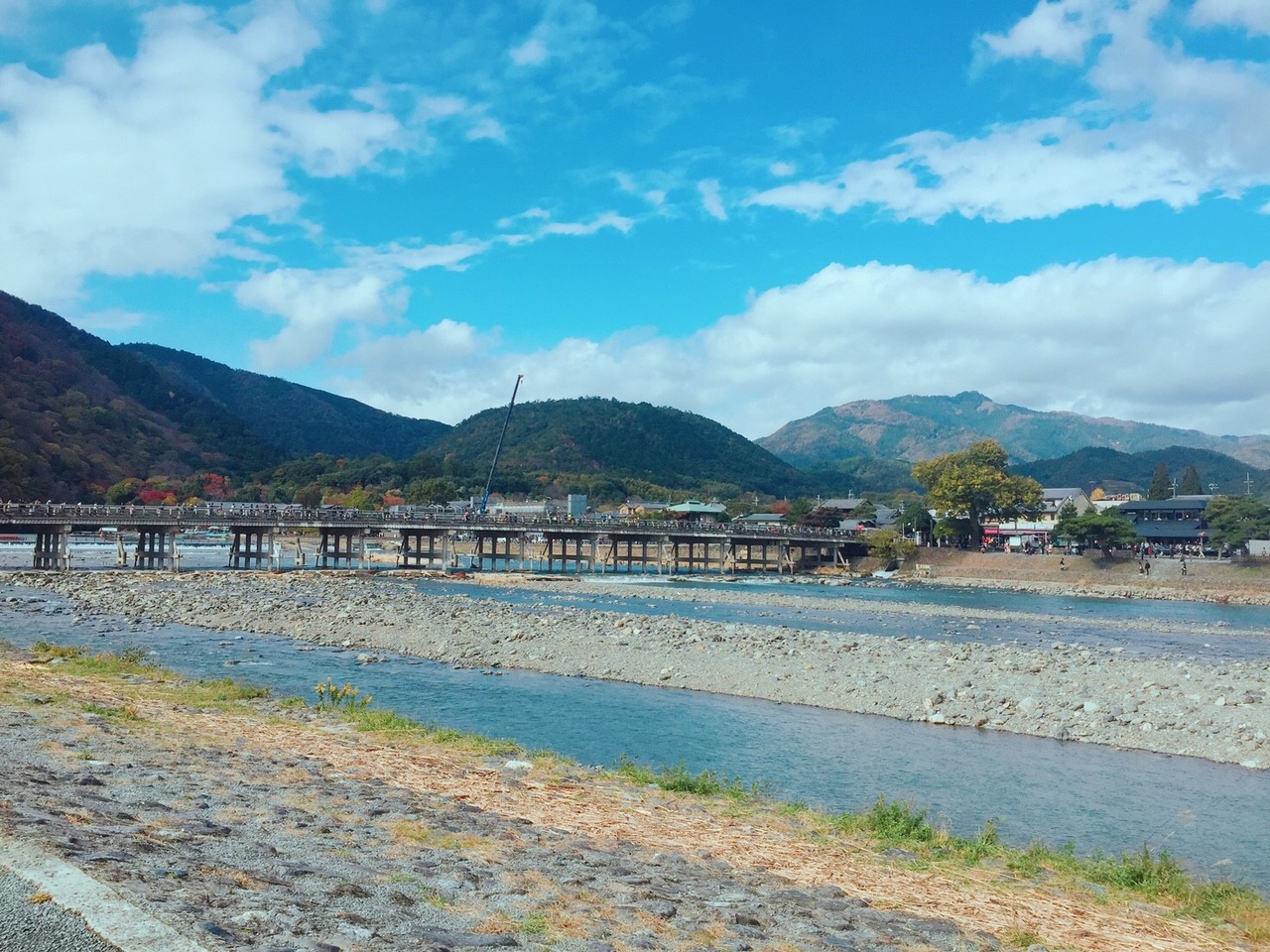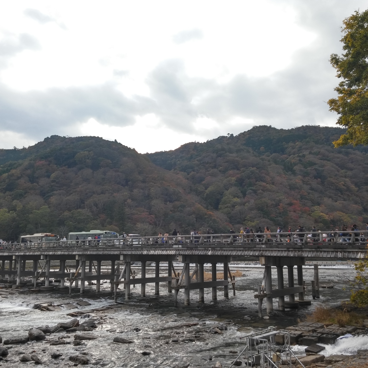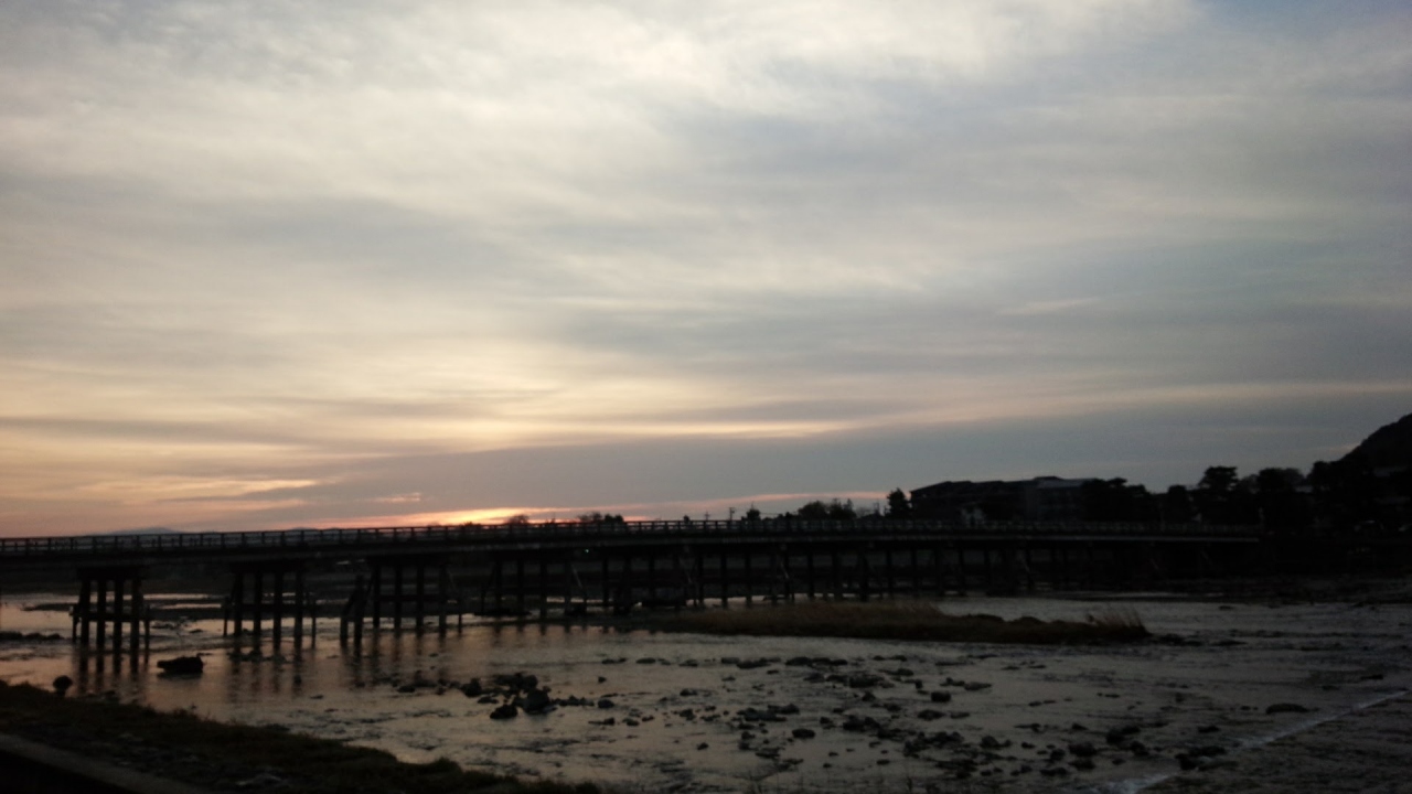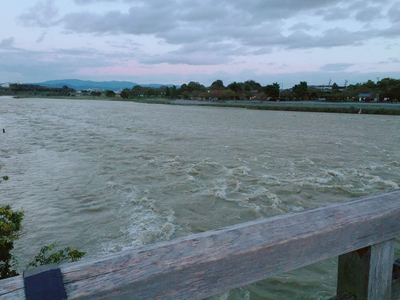 続きを読む方だったこともあり結構辺りも暗くなっててテレビや写真で見るような素敵な橋という印象はなかったです。 河川敷から眺めても、1週間前の台風21号の影響で、桂川が豪流と化していて怖いくらいでした^^;