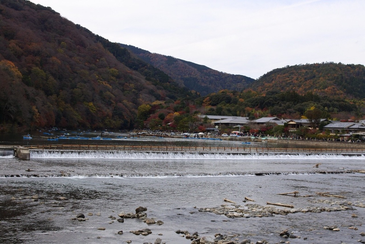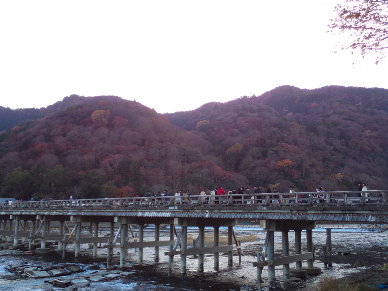 12月初めに再訪した時は、バックの山の紅葉はキレイでしたが、これまたやはり夕方に行ったため、写真撮影するにも光が足りず、あまりキレイな写真は撮れませんでした。 水の流れはチョロチョロと落ち着いてたのはキレイでしたけど。 この橋は、観光シーズンはとにかく激混みなので、移動の為に渡る以外はあまりオススメしません。