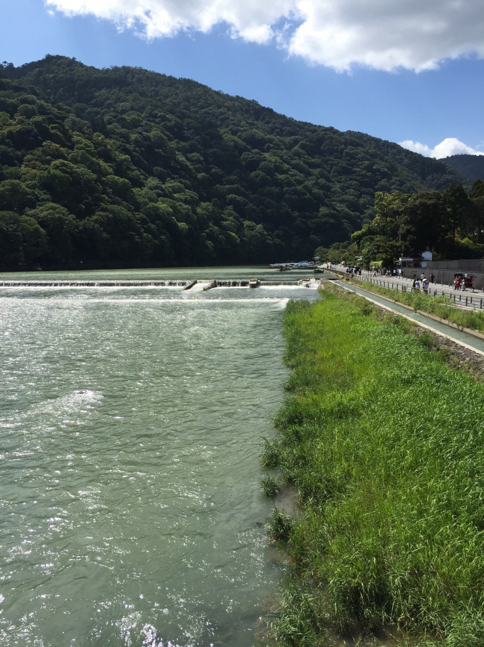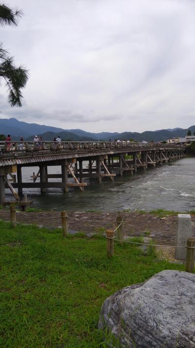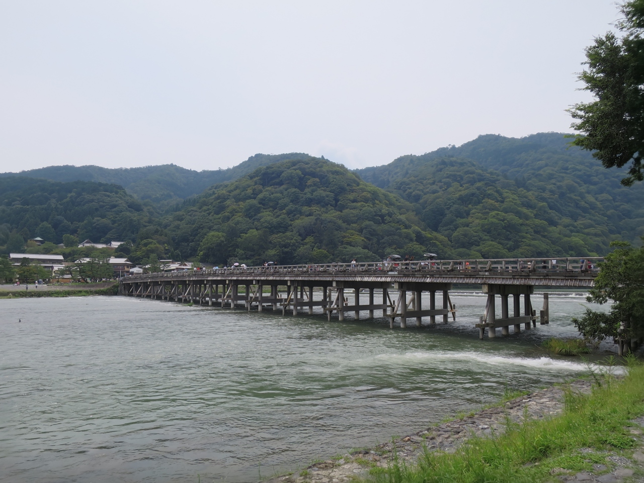 京都の観光名所として必ず出てくる渡月橋。京都には学生時代に住んだこともあるしその後も何度も観光に行ったこともあるのにまだ一... 続きを読む度も行ったことが無かったので今回初訪問。 紅葉や桜はないけれどTVや雑誌で見るのと同じ風情のある橋でした。 桂川に架かる橋かと思っていたら大堰川と書かれていたので、調べてみるとこの橋の上流を大堰川、下流を桂川という説やその他いろいろあって結局はっきりしません。1000年以上の歴史を持つ橋には色々な歴史が刻まれているのでしょう~ 閉じる