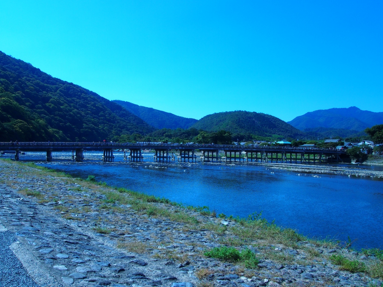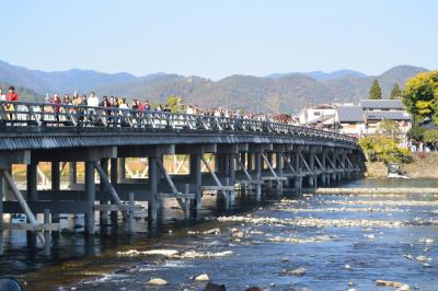 京都の観光名所として必ず出てくる渡月橋。京都には学生時代に住んだこともあるしその後も何度も観光に行ったこともあるのにまだ一... 続きを読む度も行ったことが無かったので今回初訪問。 紅葉や桜はないけれどTVや雑誌で見るのと同じ風情のある橋でした。 桂川に架かる橋かと思っていたら大堰川と書かれていたので、調べてみるとこの橋の上流を大堰川、下流を桂川という説やその他いろいろあって結局はっきりしません。1000年以上の歴史を持つ橋には色々な歴史が刻まれているのでしょう~ 閉じる