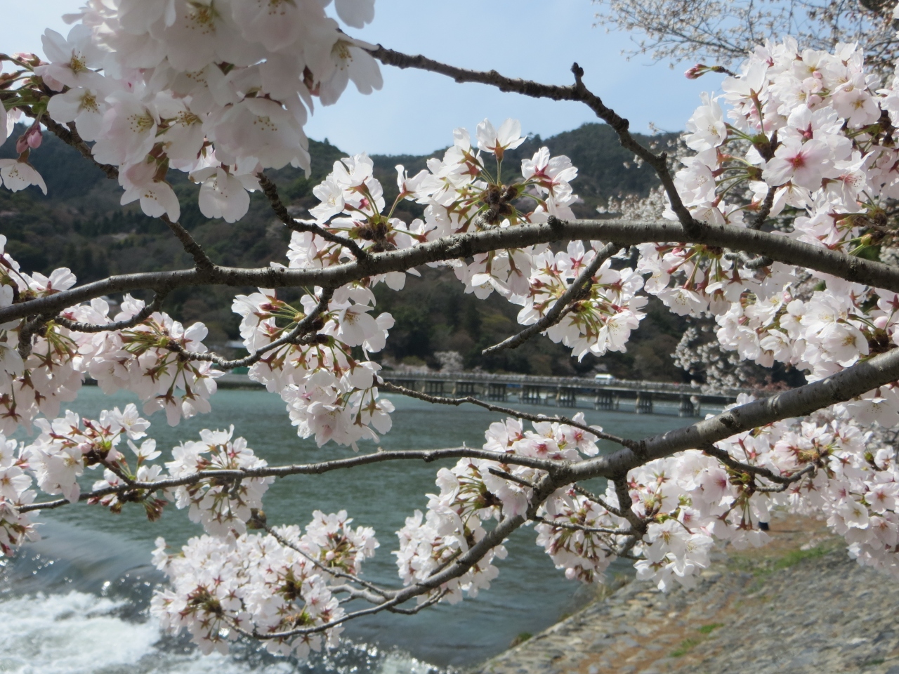 京都の観光名所として必ず出てくる渡月橋。京都には学生時代に住んだこともあるしその後も何度も観光に行ったこともあるのにまだ一... 続きを読む度も行ったことが無かったので今回初訪問。 紅葉や桜はないけれどTVや雑誌で見るのと同じ風情のある橋でした。 桂川に架かる橋かと思っていたら大堰川と書かれていたので、調べてみるとこの橋の上流を大堰川、下流を桂川という説やその他いろいろあって結局はっきりしません。1000年以上の歴史を持つ橋には色々な歴史が刻まれているのでしょう~ 閉じる