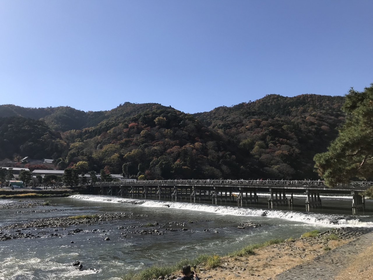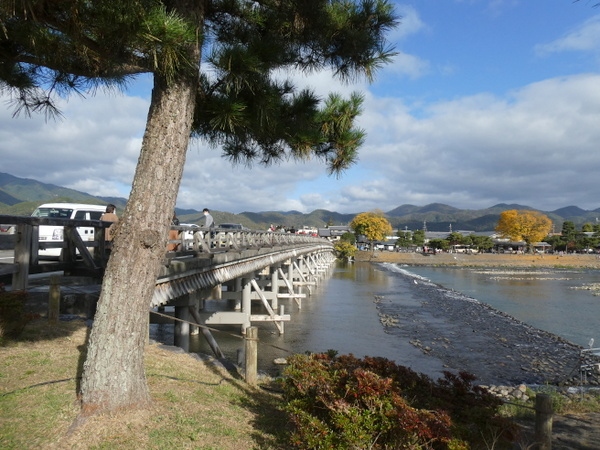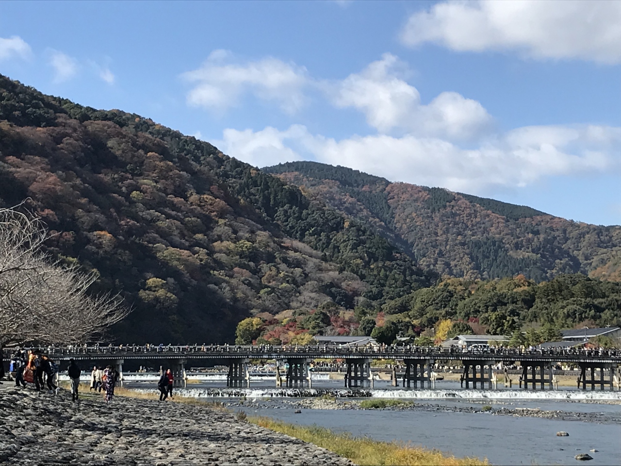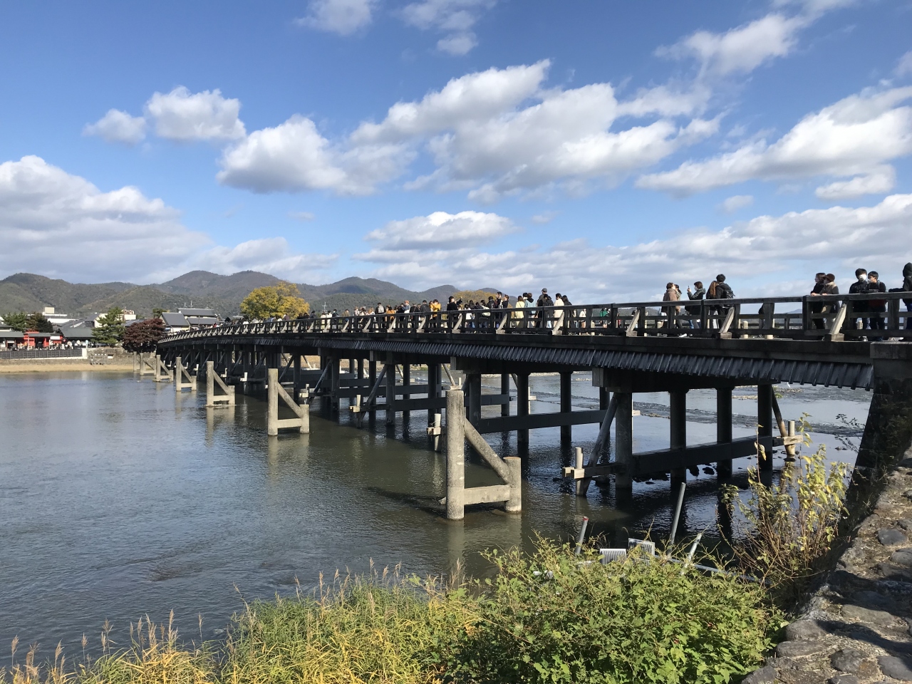 京都の観光名所として必ず出てくる渡月橋。京都には学生時代に住んだこともあるしその後も何度も観光に行ったこともあるのにまだ一... 続きを読む度も行ったことが無かったので今回初訪問。 紅葉や桜はないけれどTVや雑誌で見るのと同じ風情のある橋でした。 桂川に架かる橋かと思っていたら大堰川と書かれていたので、調べてみるとこの橋の上流を大堰川、下流を桂川という説やその他いろいろあって結局はっきりしません。1000年以上の歴史を持つ橋には色々な歴史が刻まれているのでしょう~ 閉じる