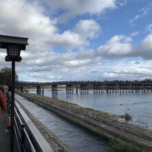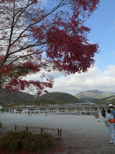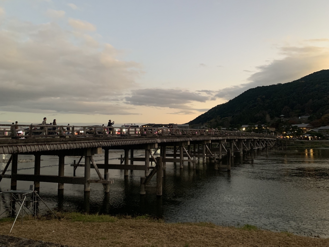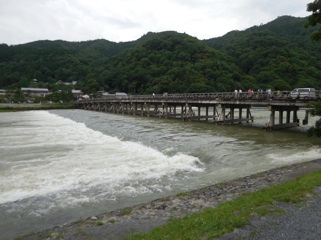 京都の観光名所として必ず出てくる渡月橋。京都には学生時代に住んだこともあるしその後も何度も観光に行ったこともあるのにまだ一... 続きを読む度も行ったことが無かったので今回初訪問。 紅葉や桜はないけれどTVや雑誌で見るのと同じ風情のある橋でした。 桂川に架かる橋かと思っていたら大堰川と書かれていたので、調べてみるとこの橋の上流を大堰川、下流を桂川という説やその他いろいろあって結局はっきりしません。1000年以上の歴史を持つ橋には色々な歴史が刻まれているのでしょう~ 閉じる