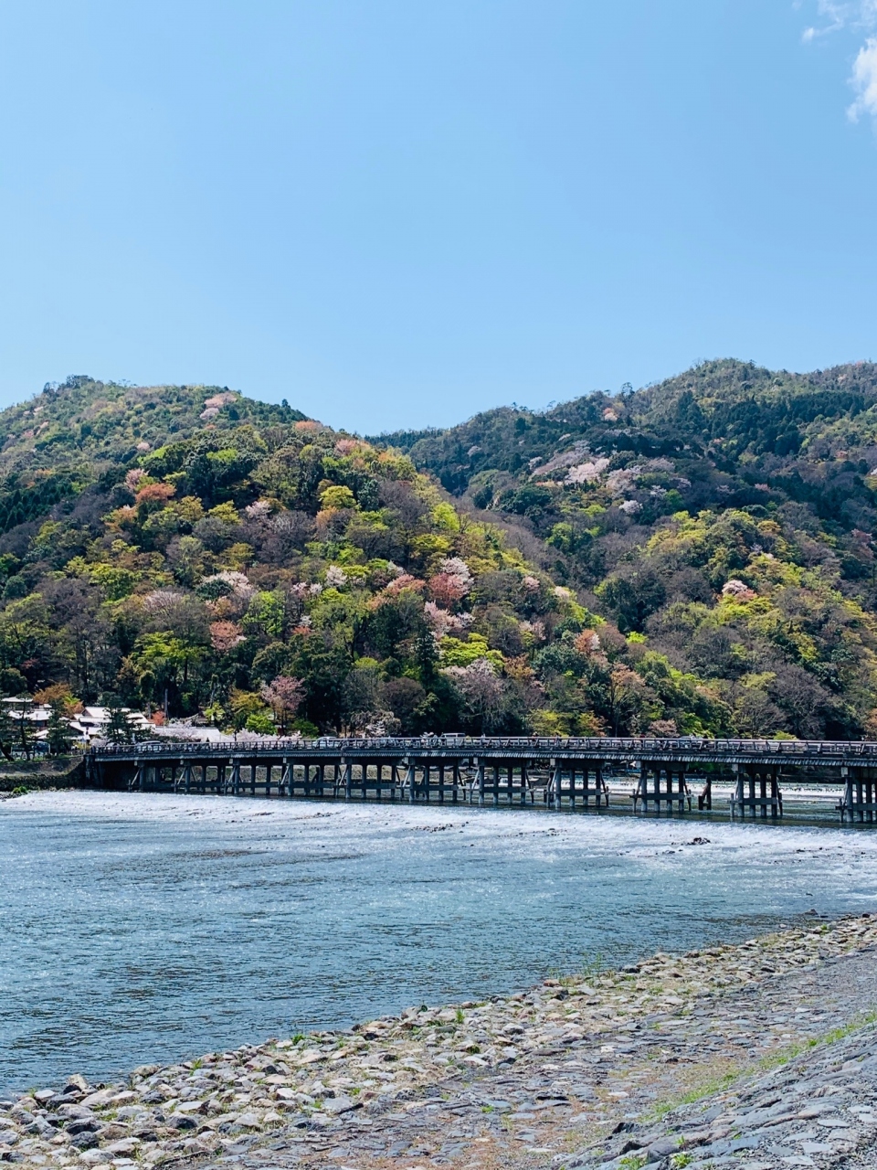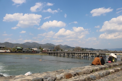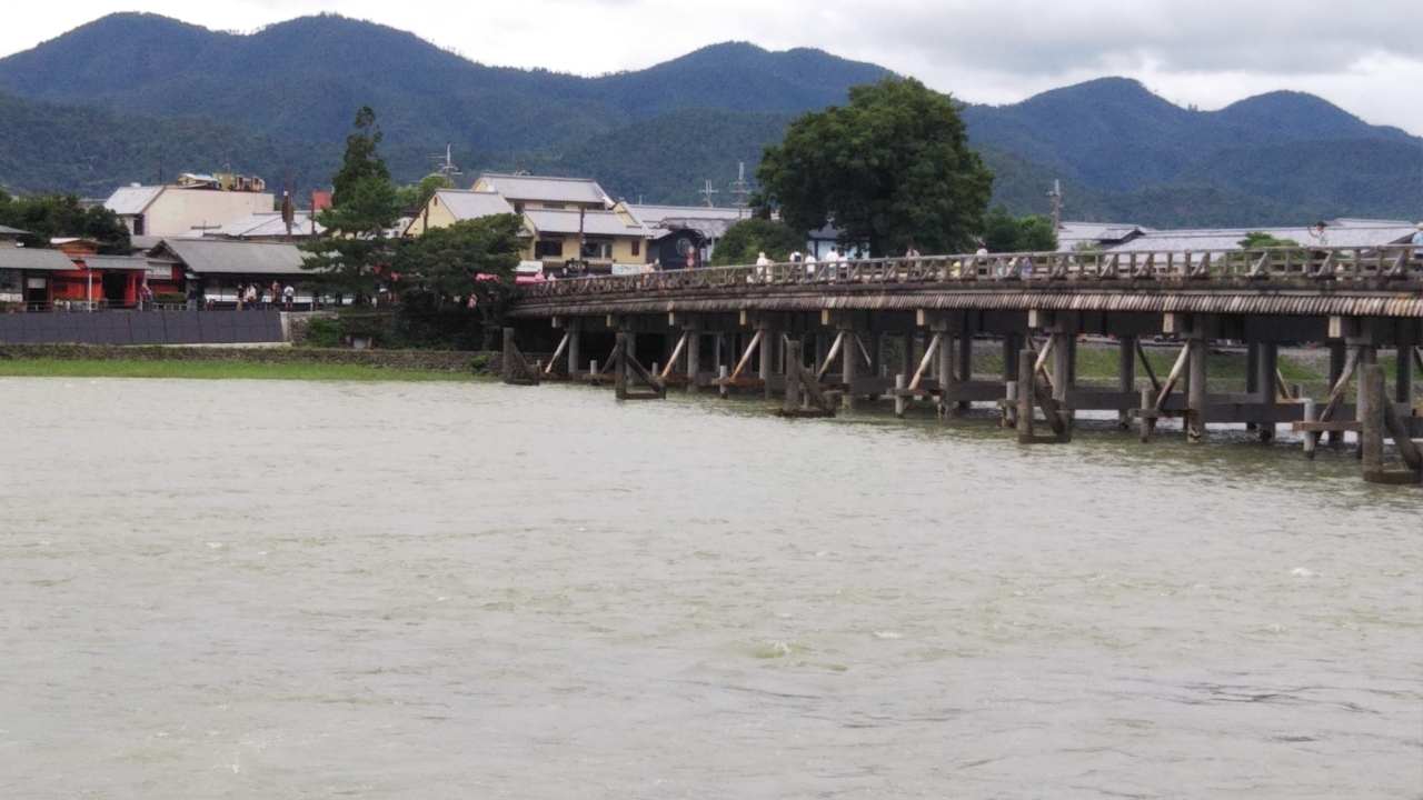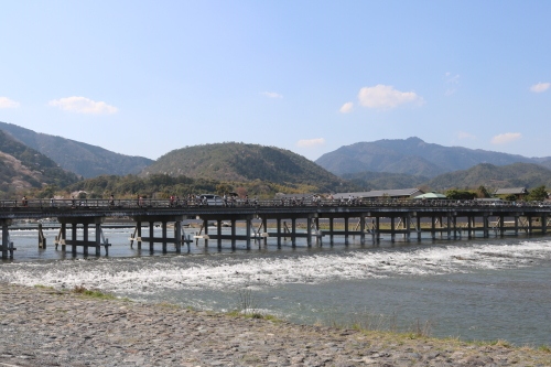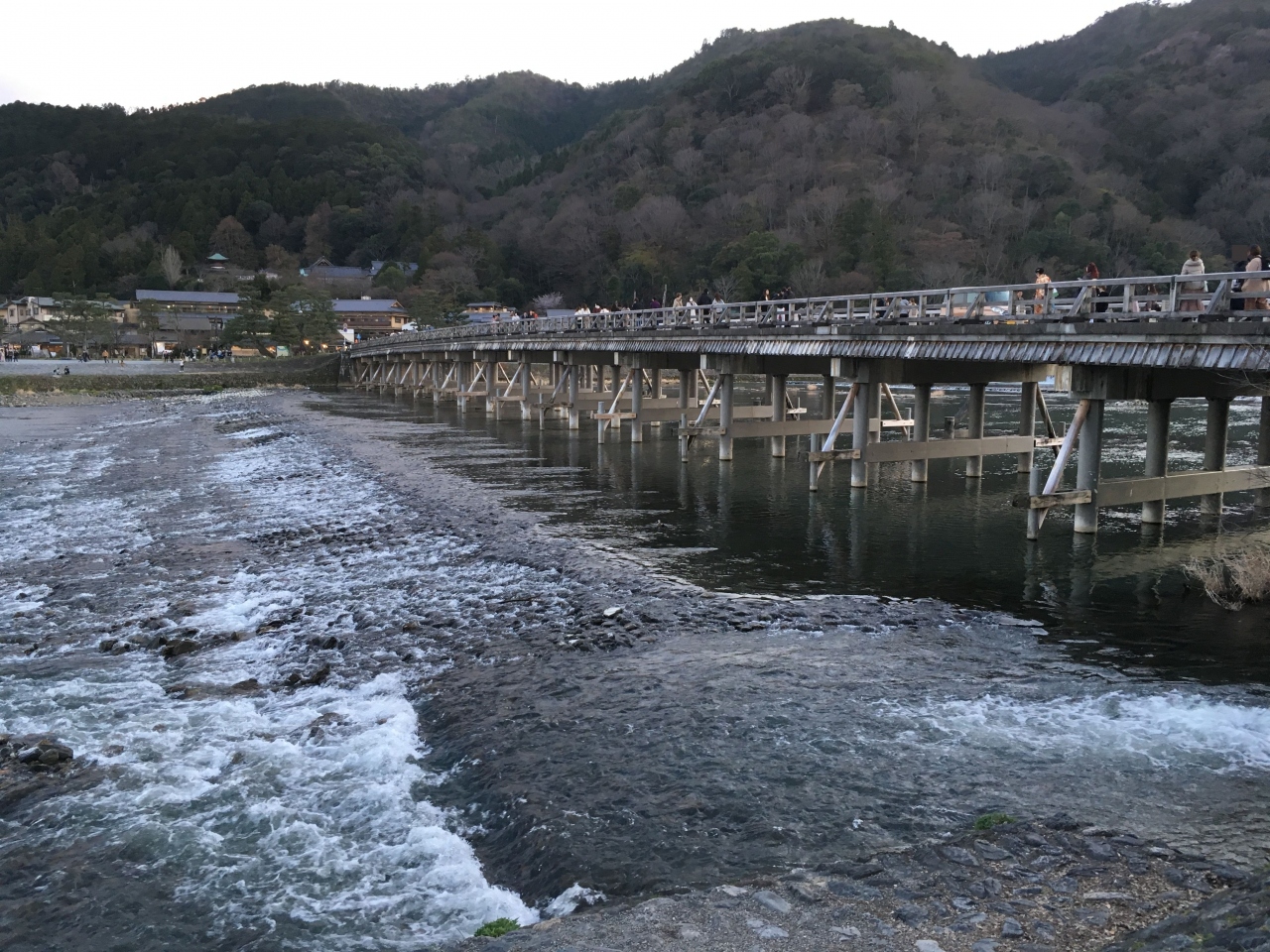 京都の観光名所として必ず出てくる渡月橋。京都には学生時代に住んだこともあるしその後も何度も観光に行ったこともあるのにまだ一... 続きを読む度も行ったことが無かったので今回初訪問。 紅葉や桜はないけれどTVや雑誌で見るのと同じ風情のある橋でした。 桂川に架かる橋かと思っていたら大堰川と書かれていたので、調べてみるとこの橋の上流を大堰川、下流を桂川という説やその他いろいろあって結局はっきりしません。1000年以上の歴史を持つ橋には色々な歴史が刻まれているのでしょう~ 閉じる