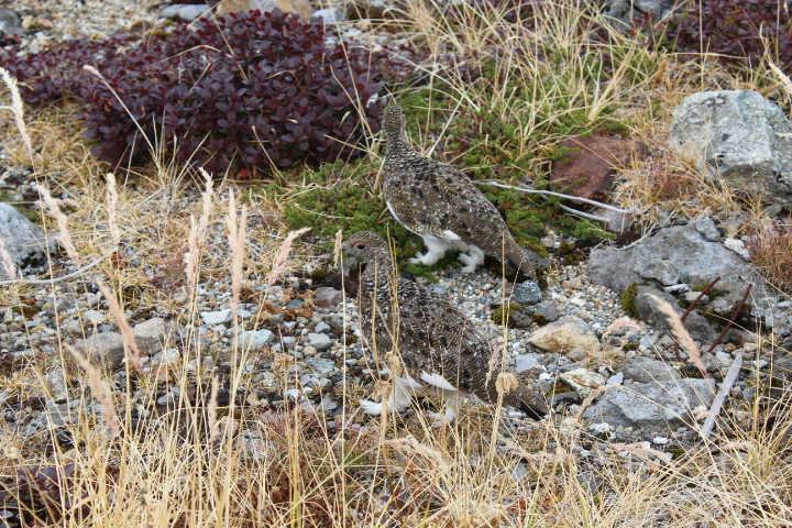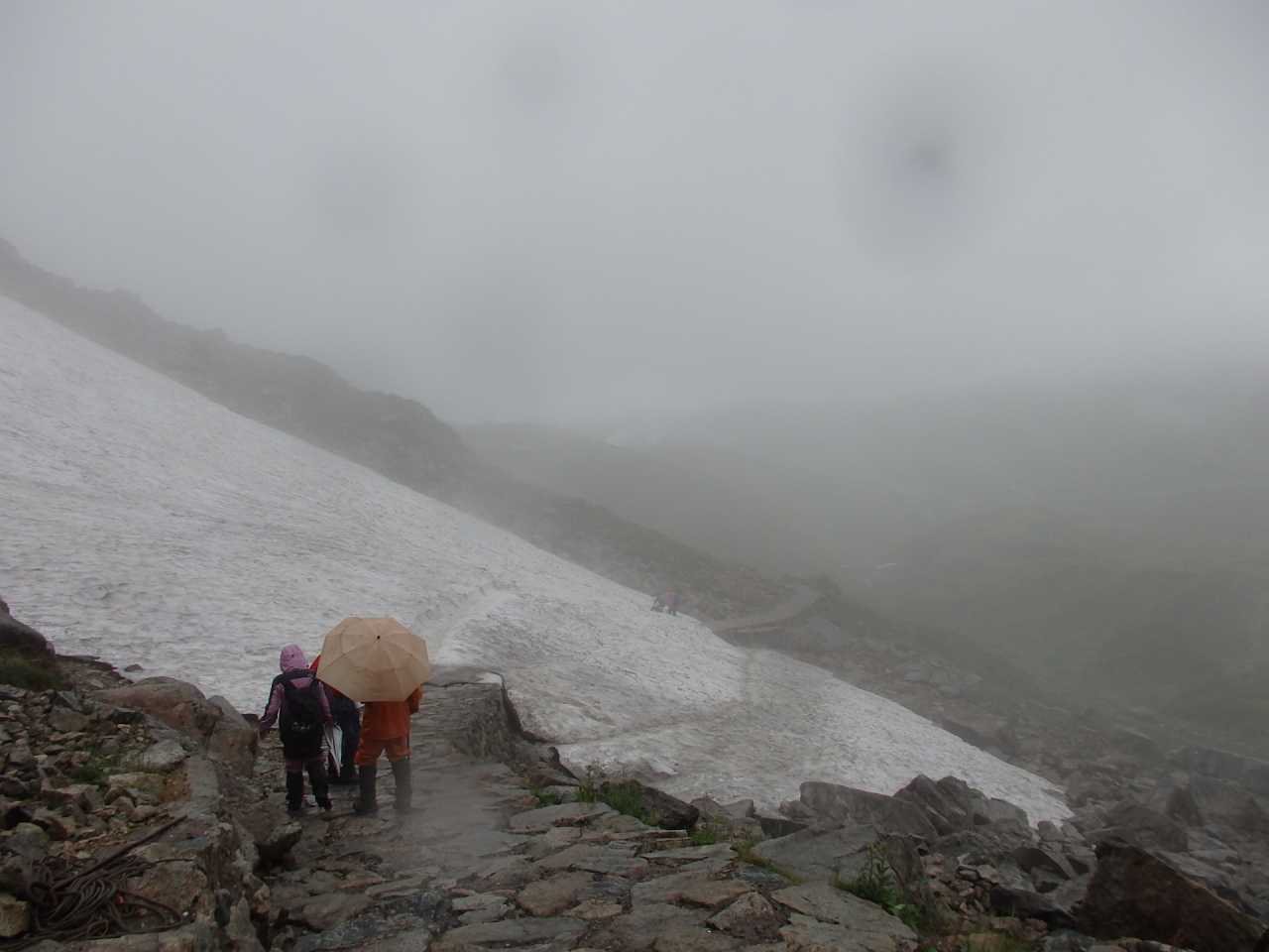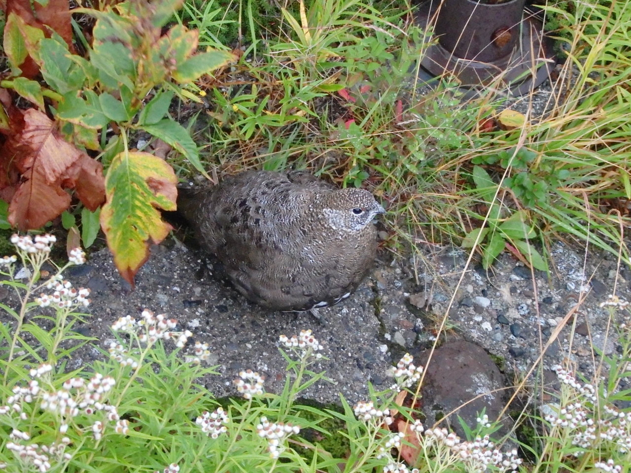 雄山登山予定であったが、強雨のため散策、登山とも断念する。しかし残念なので、一ノ越まで登り、引き返す予定で出発する。1時間... 続きを読む10分ほどで一ノ越下の祠に到着。ここで引き返す。道中出会った花はイワショウブ、タテヤマアザミ、ワレモコウ、チングルマ、タカネコウゾリナ、ミヤマセンキュウ、コケモモ、エゾリンドウ、トリカブト、ウサギギク、イワイチョウ、ミヤマキンバイ、モミジカラマツ、ダイモンジソウ、ミヤマキンポウゲ、アオノツガザクラ、シラネニンジン、タカネツメクサ、クロトウヒレン、ヨツバシオガマ、ウメバチソウ等20種を越えました。登山の不満を野花がカバーしてくれました。ライチョウ親子3羽にも出会えました。みくりが池温泉に帰り、温泉で汗を流し富山駅にむかい、夕方より越中八尾に向かい、おはら風の盆見物に行く