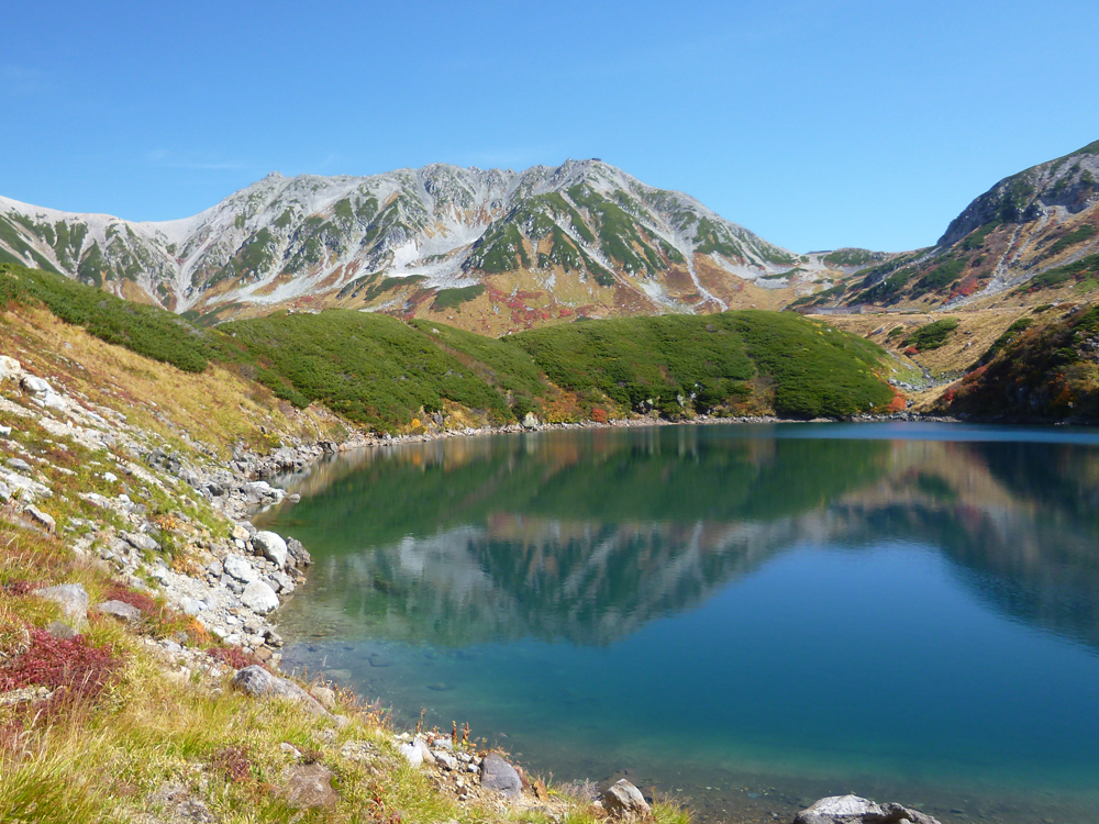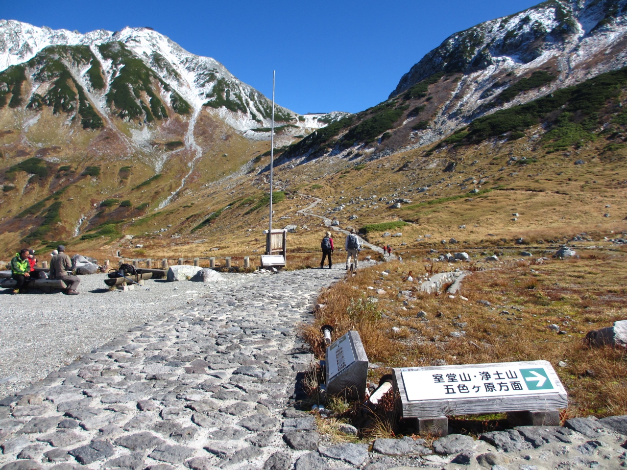 剣岳もはっきりみえ秋晴れでした。まだちょっと紅葉真っ盛りには早かったのですが、寒くもなく、空気も澄んでいて快適でした。本当に室堂は登山者もハイキングの人も自分のペースで楽しめる場所です。