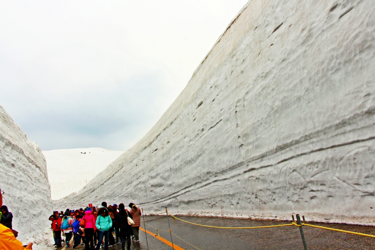 2016年は暖冬の影響で、壁の高さは最高でも13mと低めでしたが、道路の両側にそびえ立つ雪の壁は圧巻の風景でした。