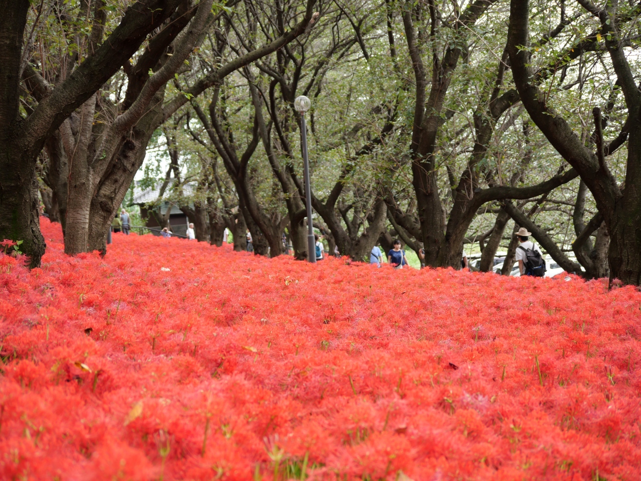 関東屈指の桜の名所に広がる真っ赤な絨毯!