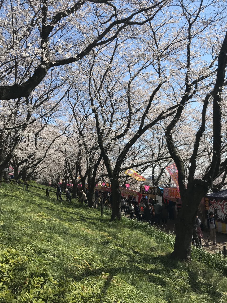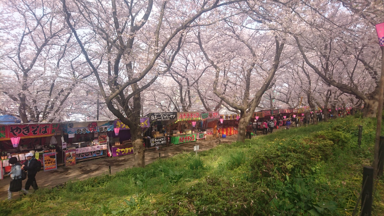 屋台は桜堤の菜の花畑の反対側に50件くらいずらーっと並んでいた。