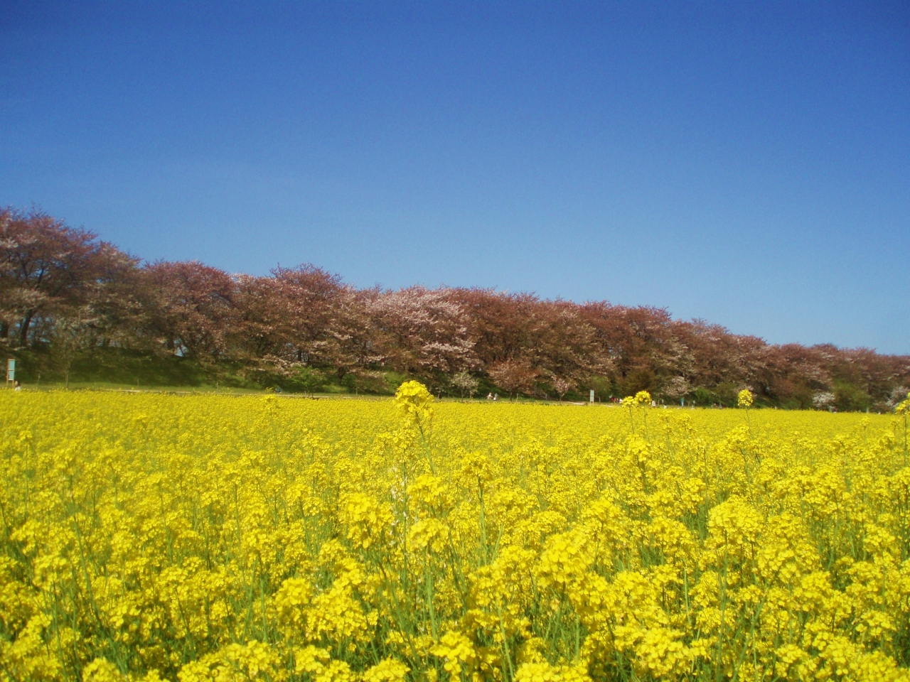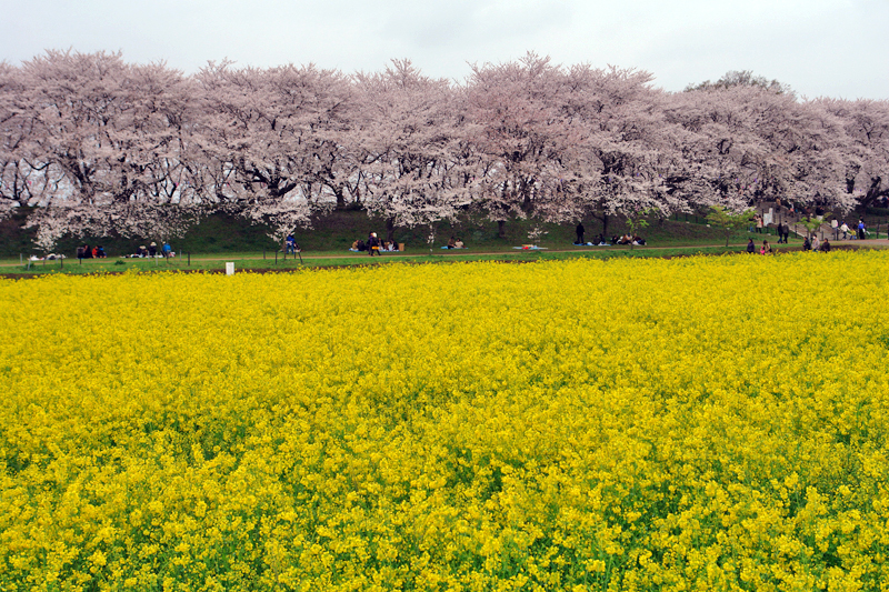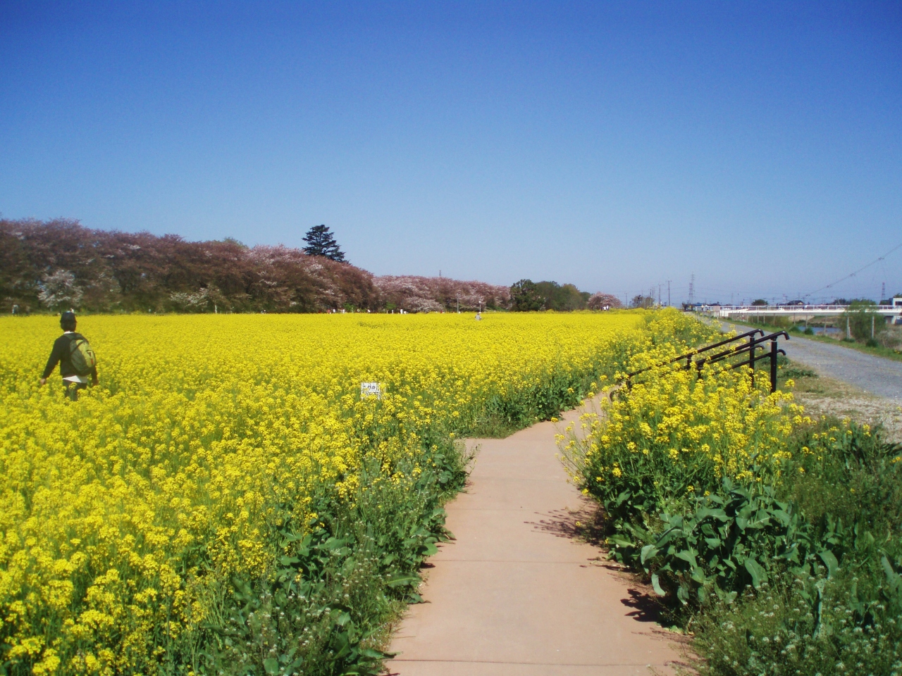 そして、河川敷まで足を伸ばせば一面の菜の花畑。