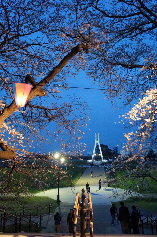 明かりに照らされた桜と菜の花は綺麗で、昼間とはまた違っていていいものだなと思いました。