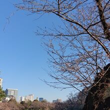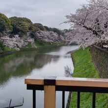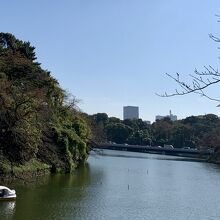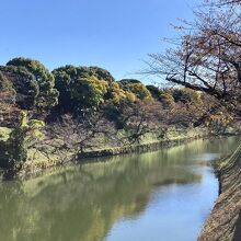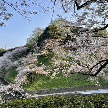 お濠沿いをテクテク歩くと、全長約700mの遊歩道には桜が咲き誇り