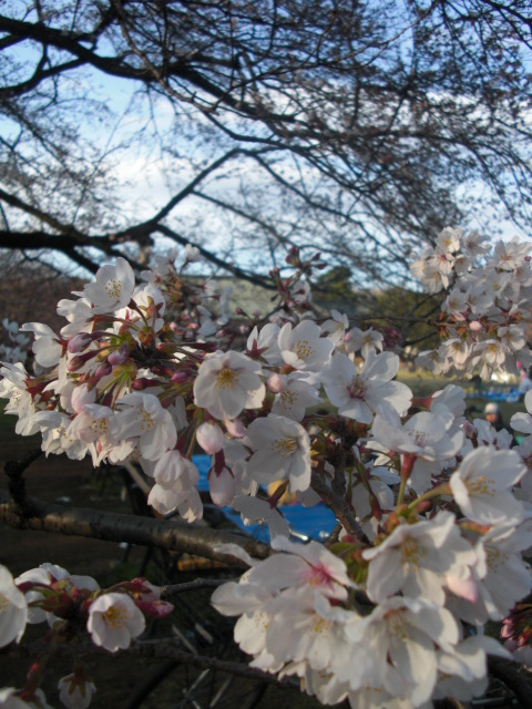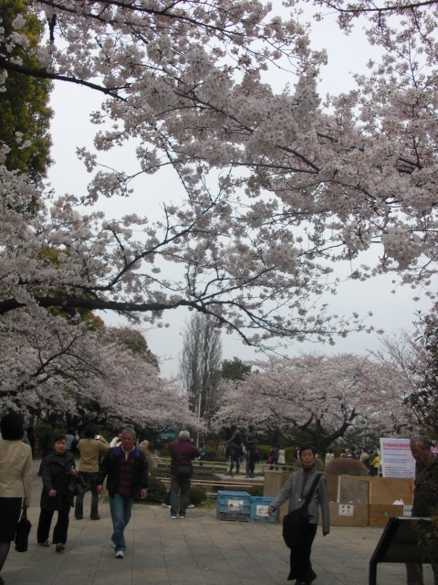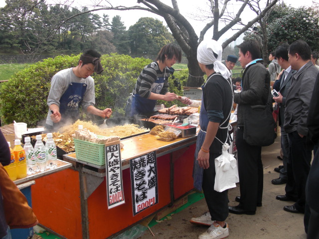 近くの靖国神社では桜祭りが開かれ屋台等が出て
