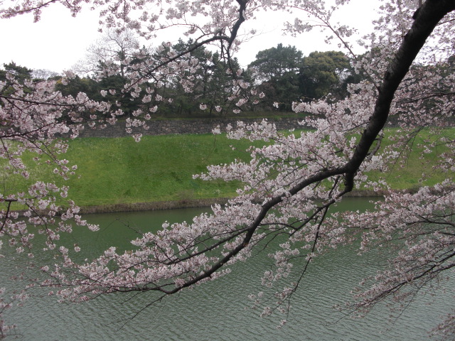 お堀に垂れ下がる桜の枝が見ごたえあり