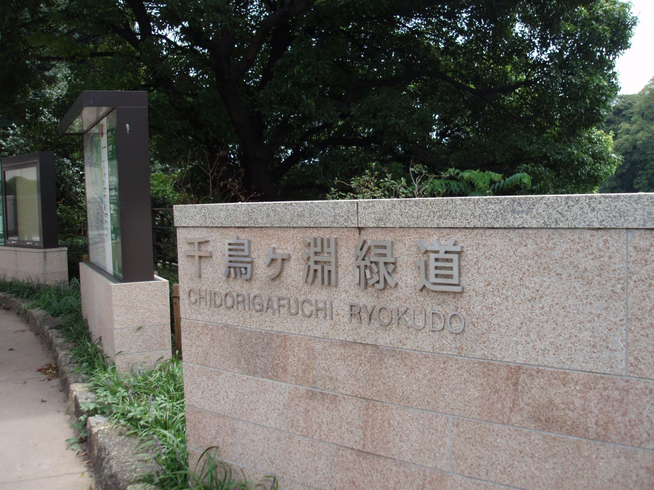 堂々とした武道館をバックにして濠の四方を美しい緑に囲まれた風景は都心とは思えぬ美しさ。濠沿いには約800mのガーデンロードの愛称で親しまれている緑の散歩道が続く。この千鳥が淵の名は、冬に都鳥などが多く集まるところからきたとも、V字形の濠の形が千鳥に似ているからともいわれている。