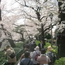 大きな桜の木が植えられ、千鳥が淵までの道は
